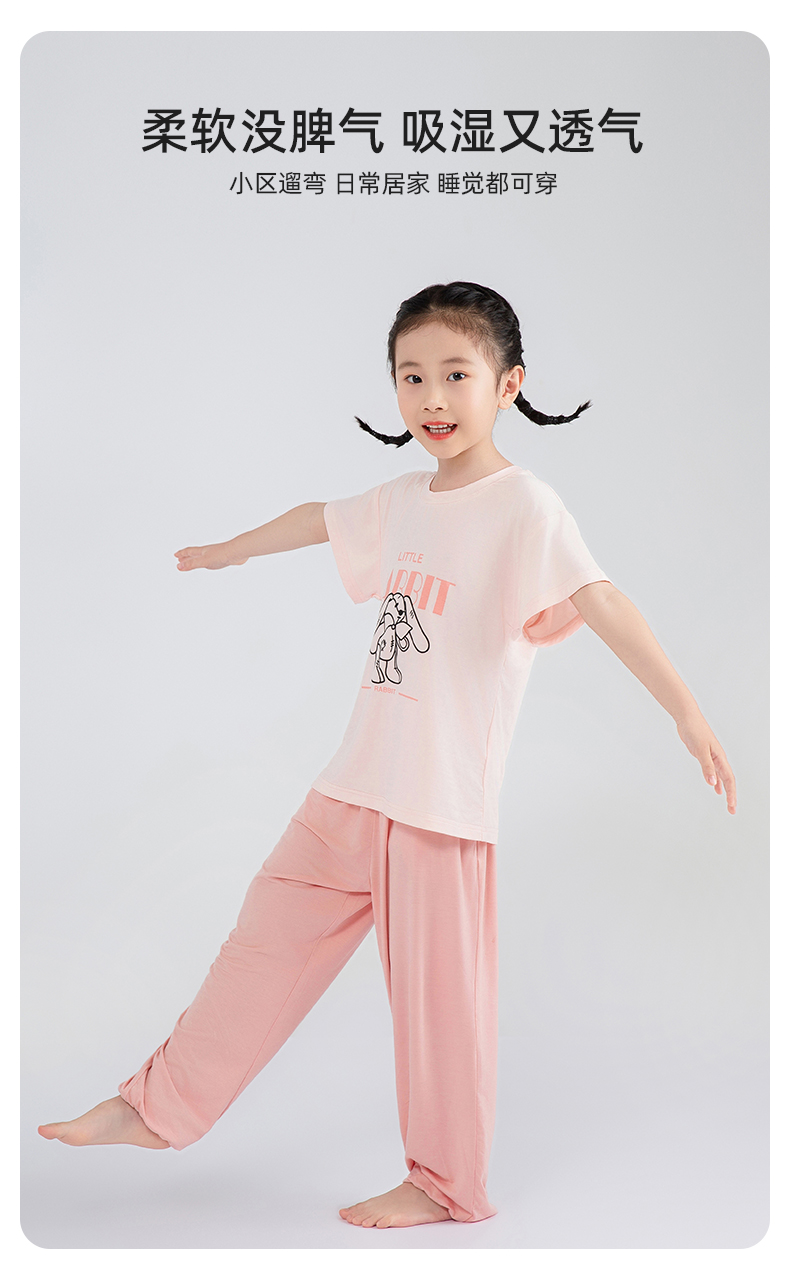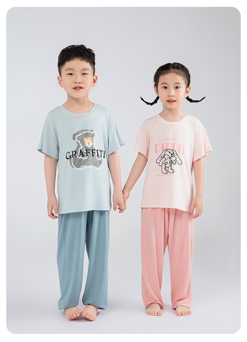 【商场同款】熳洁儿 儿童家居服人棉短袖长裤套装男女童可爱印花夏季新款24203605/24203602