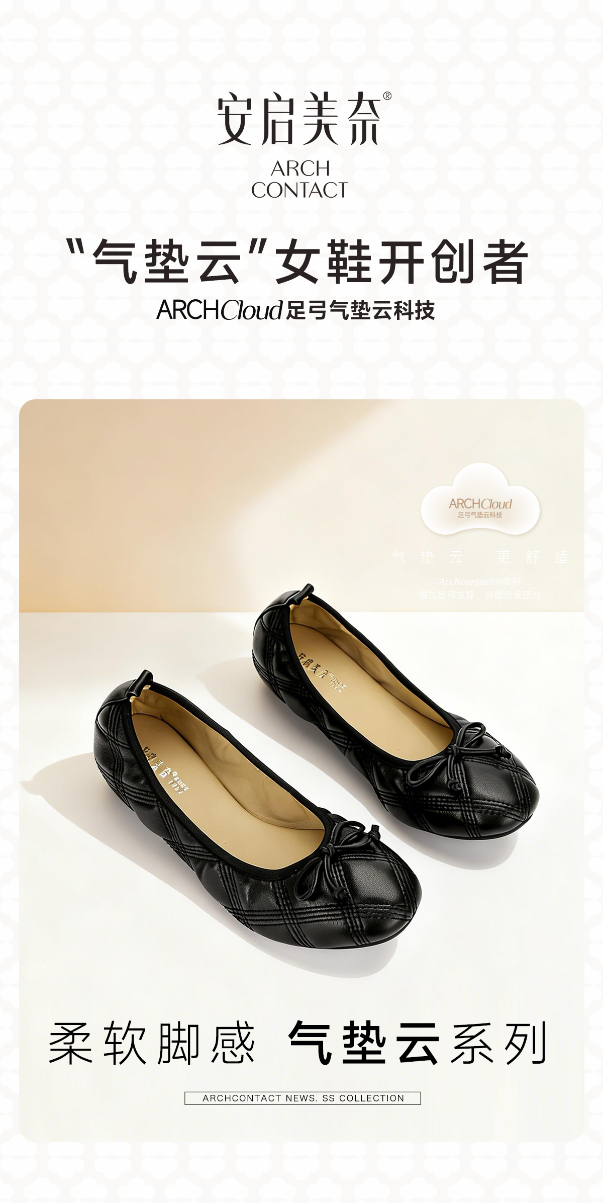 【预售15天】ARCH CONTACT安启美奈云朵菱格纹浅口蝴蝶结通勤百搭鞋53115