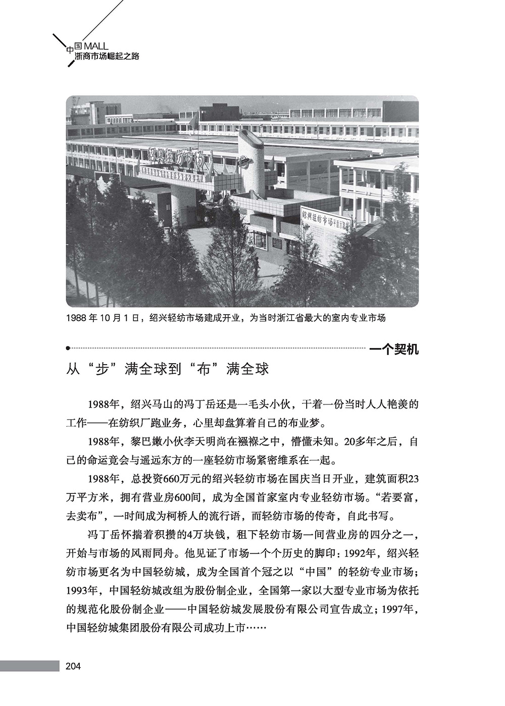 在隆重纪念改革开放40周年之际,市场导报社与浙江省市场协会联合编纂《中国MALL—浙商市场崛起之路》一书,解析40个浙江市场的典型样本,探索商品市场在转型升级中的普遍规律,书写在改革开放的洪流中,浙江人民解放思想、实事求是、与时俱进的好故事,传递这个时代的好声音。