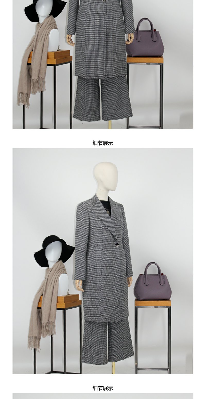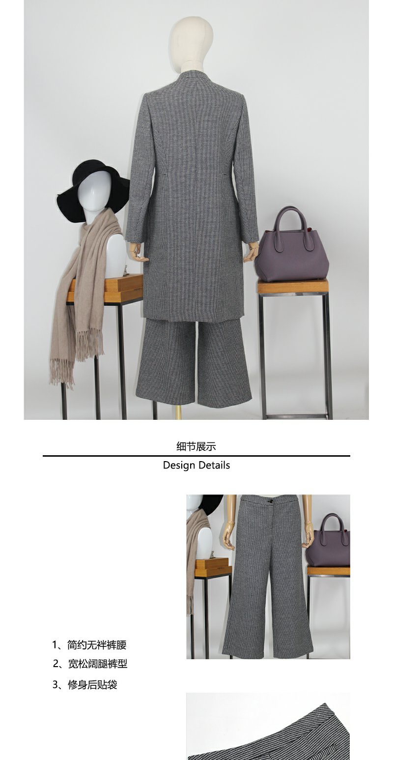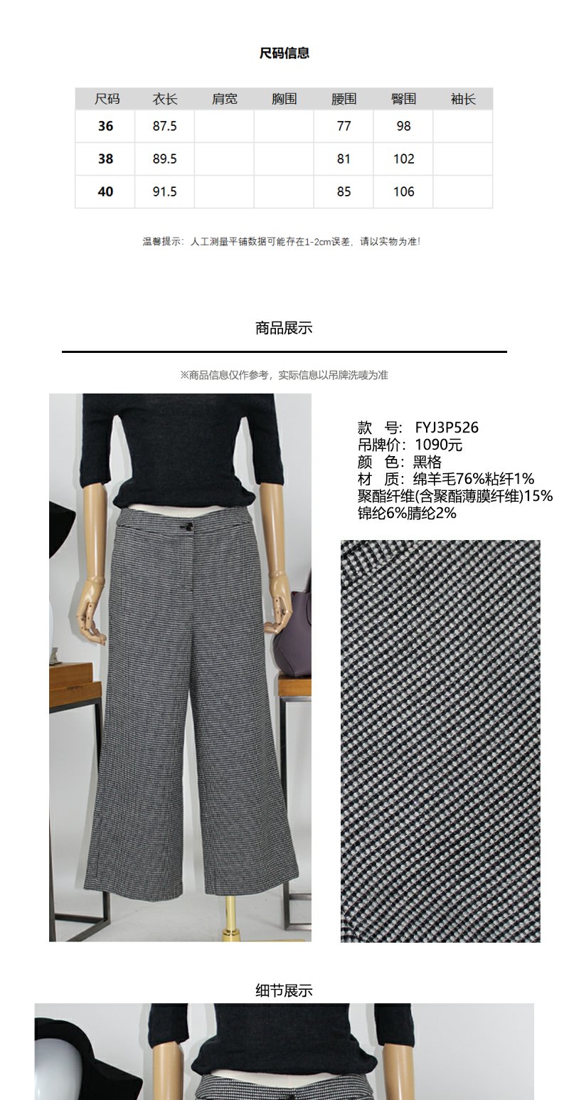 FOCALS福柯斯秋季新款通勤百搭休闲直筒裤格纹九分女裤FYJ3P526NE
