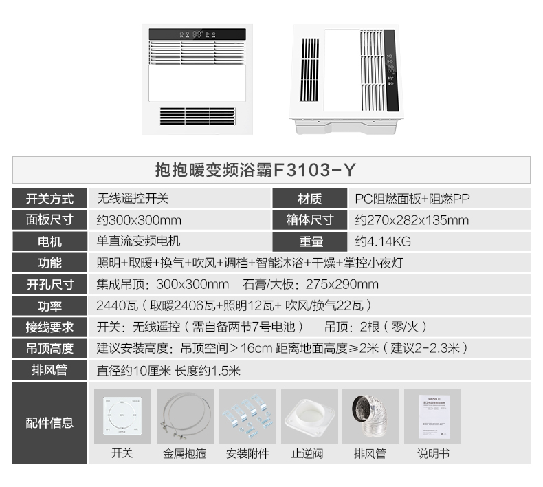 欧普(OPPLE)F3103·集成吊顶风暖浴霸灯30x30带遥控暖风机卫生间浴室