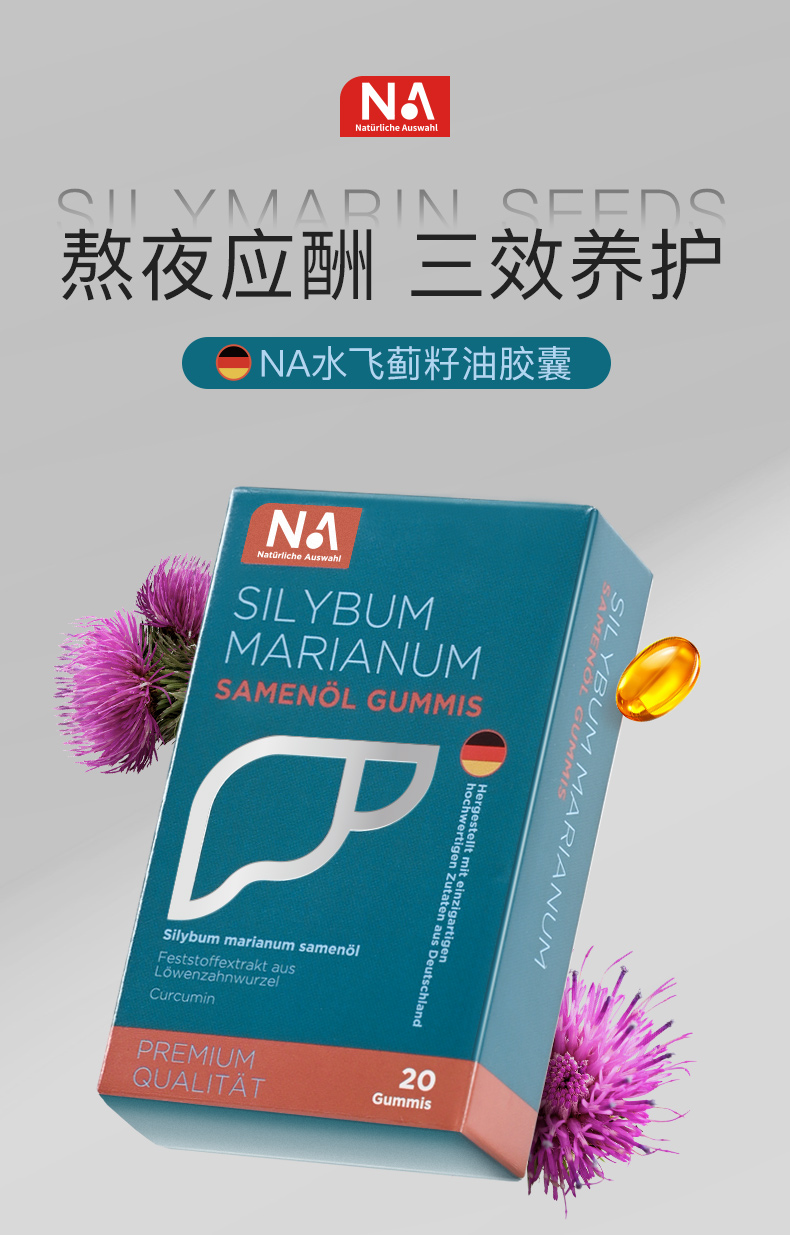 德国NA原装进口【水飞蓟籽油胶囊】 水飞蓟籽油+蒲公英根固体提取物+姜黄素