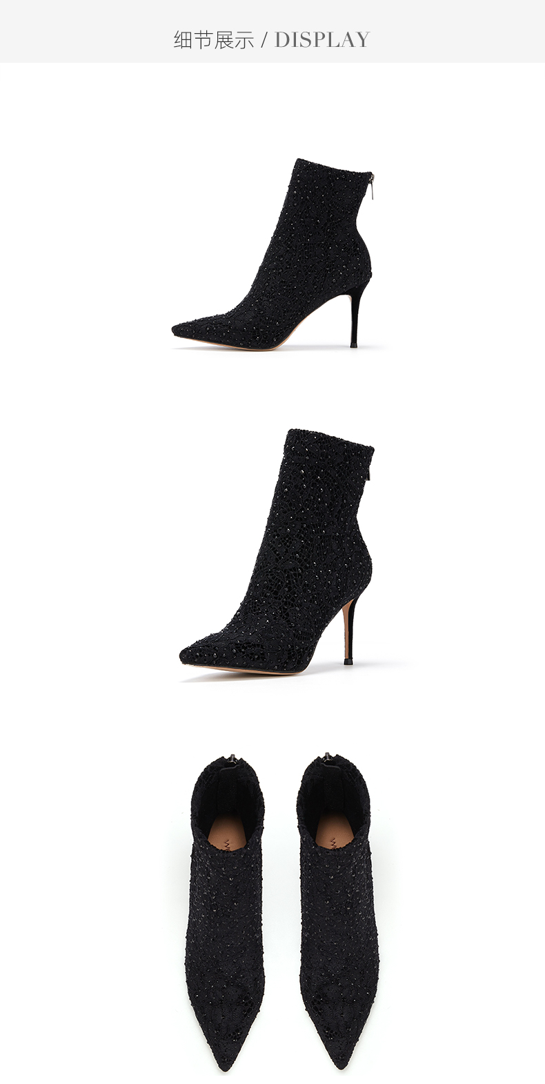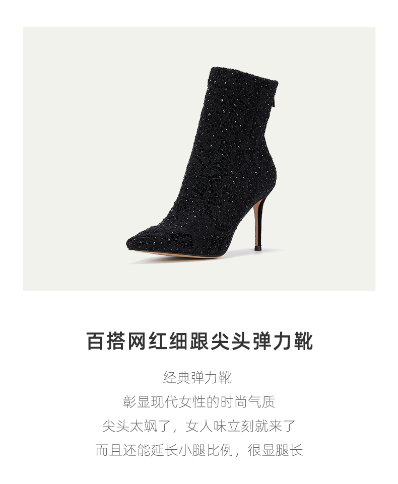 westory2023秋季新款百搭网红细跟尖头弹力靴少女气质亮皮W23DS82821