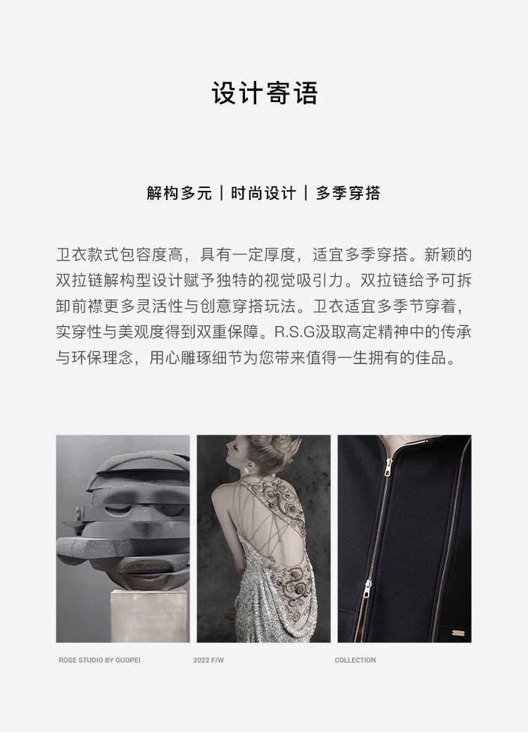 RSG郭培成衣品牌原创双拉链设计长袖开衫休闲卫衣上衣女装