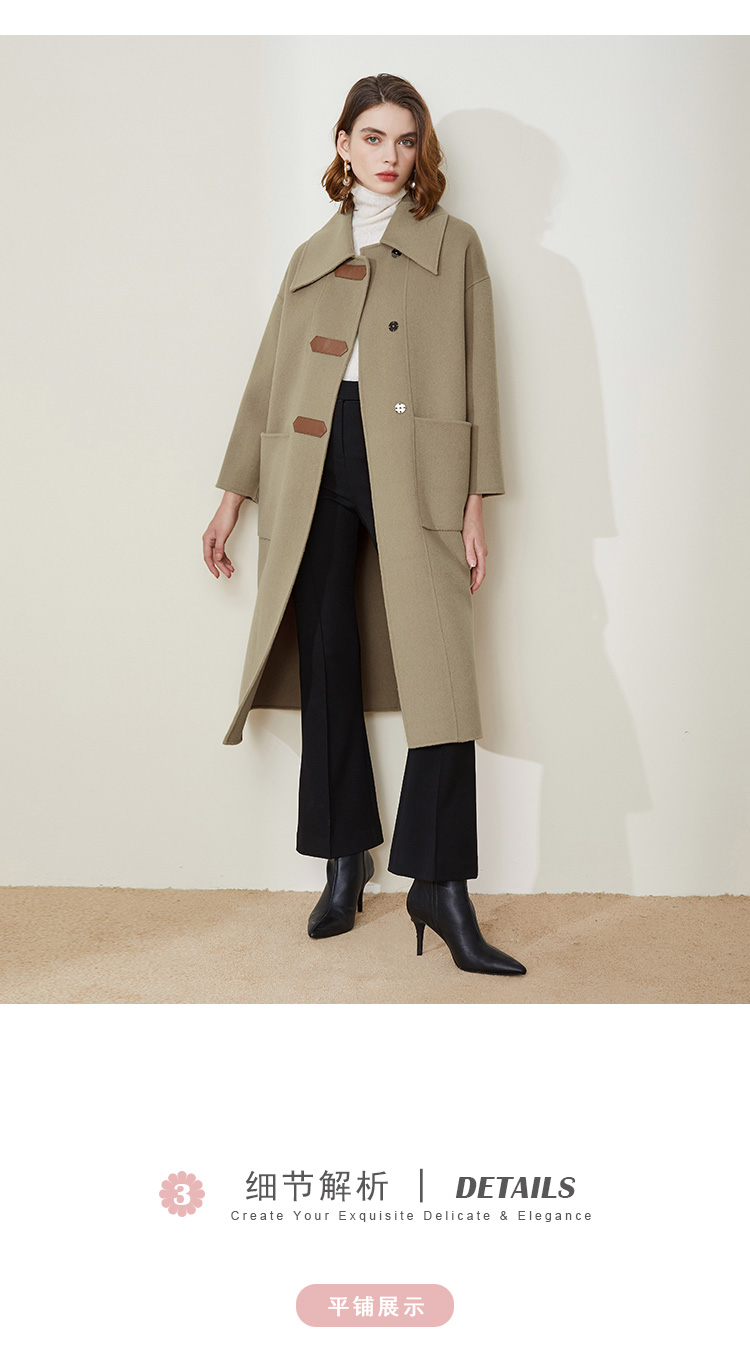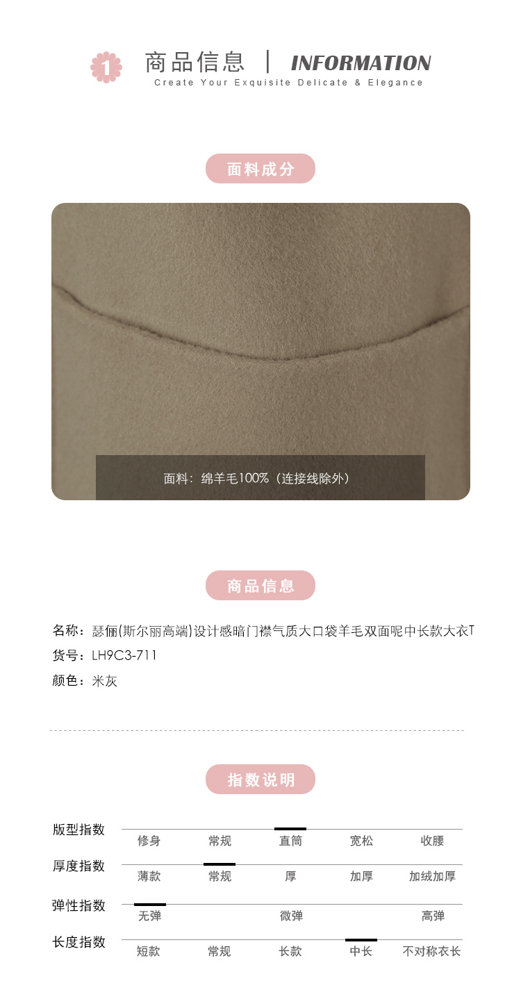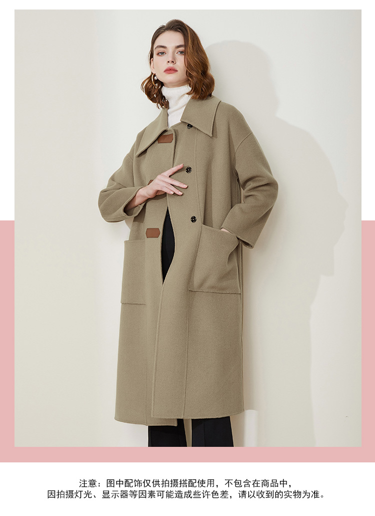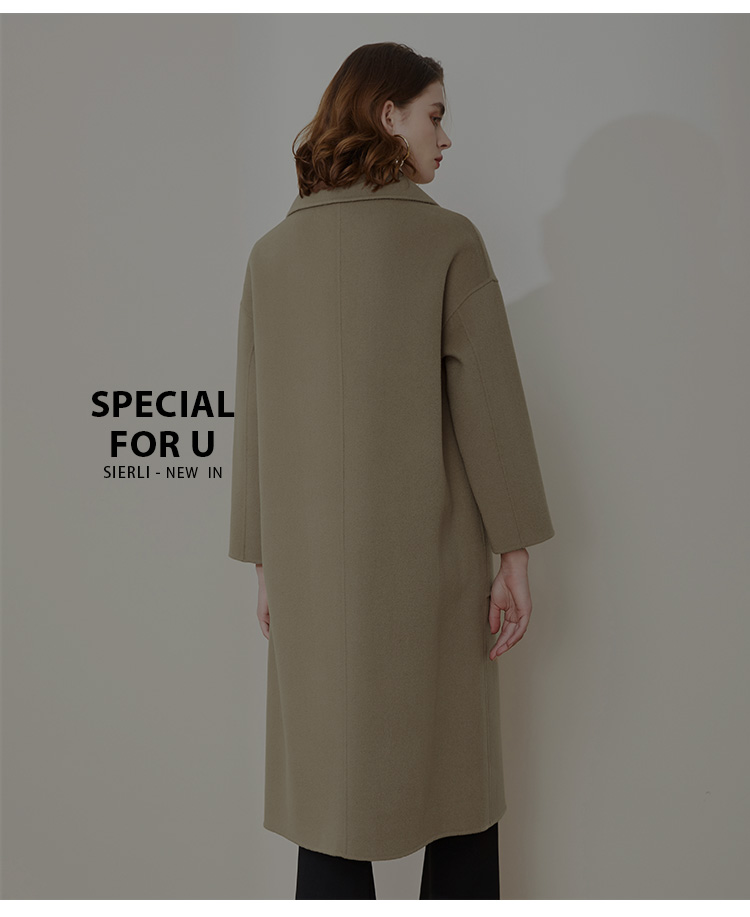 LH9C3斯尔丽瑟俪2021秋冬新款暗门襟气质大口袋羊毛双面呢中长款大衣