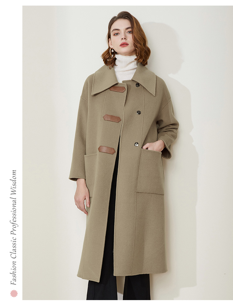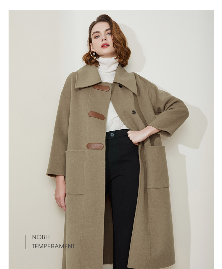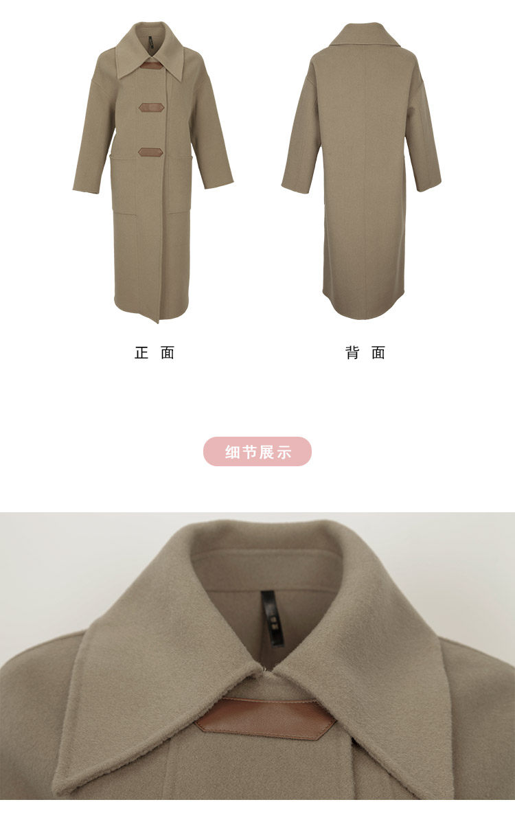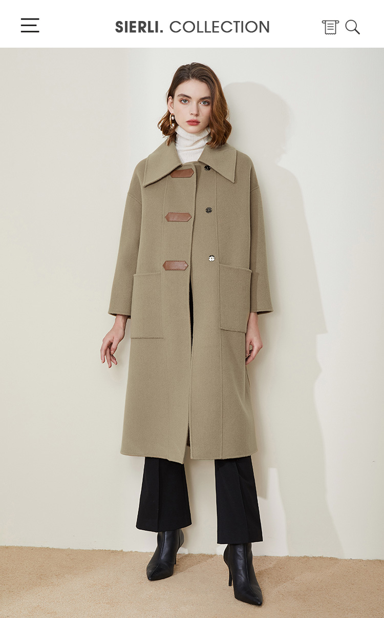 LH9C3斯尔丽瑟俪2021秋冬新款暗门襟气质大口袋羊毛双面呢中长款大衣