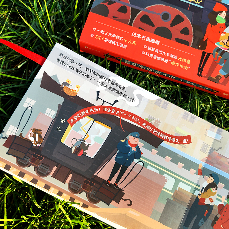 横向打开,可以把这本书“变成”一列2米多长的小火车哦!背面有超好玩的火车棋地板游戏,配合卡牌、DIY手工游戏道具,体验“开火车”的快乐!