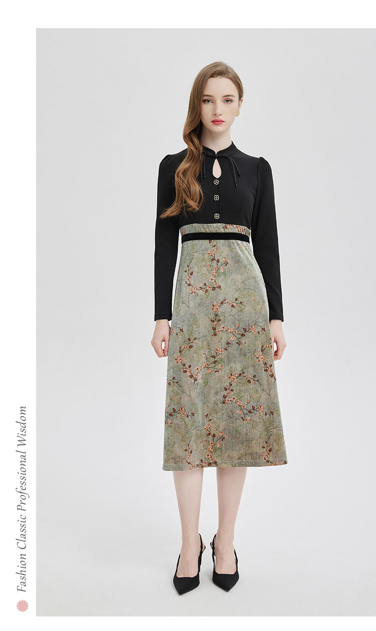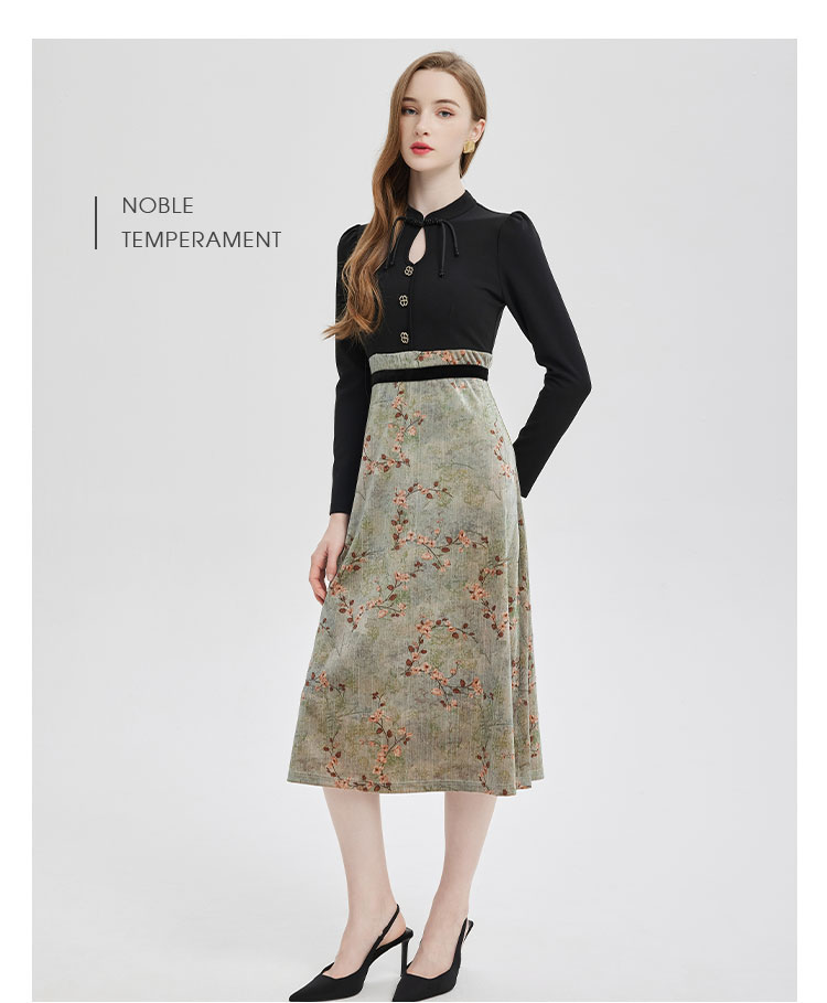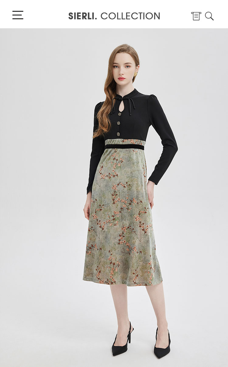 PE832斯尔丽2024春季新款撞花色显高显瘦修长版连衣裙