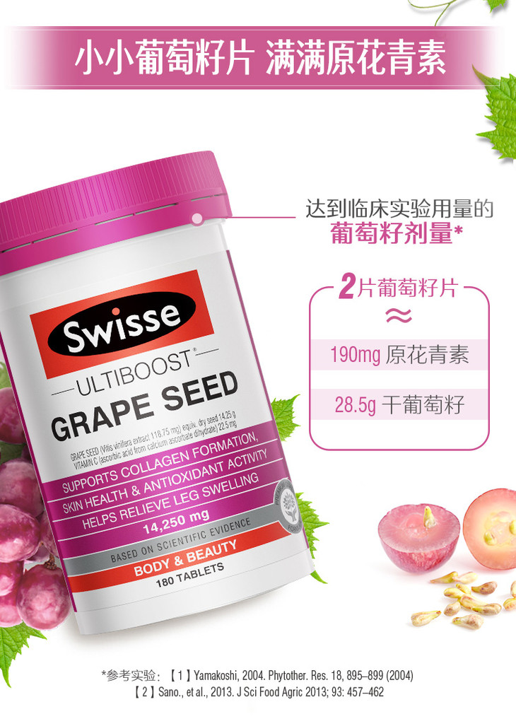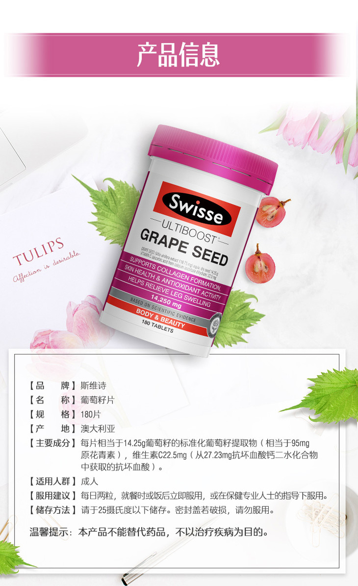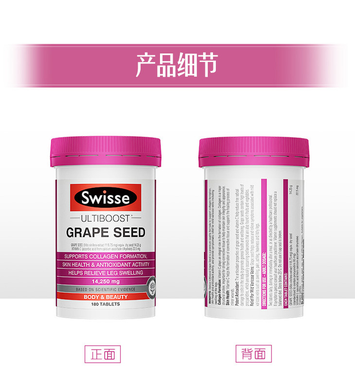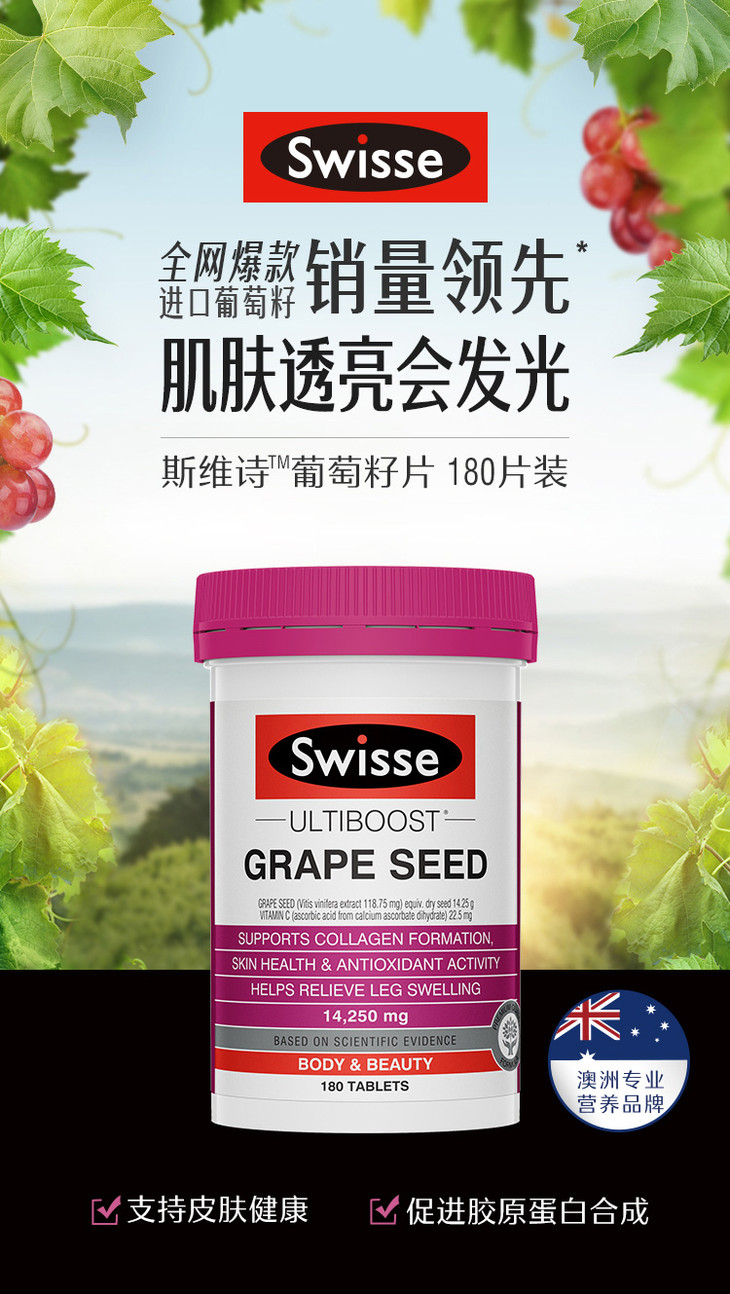 澳洲swisse斯维诗葡萄籽180粒提取物原花青素维生素