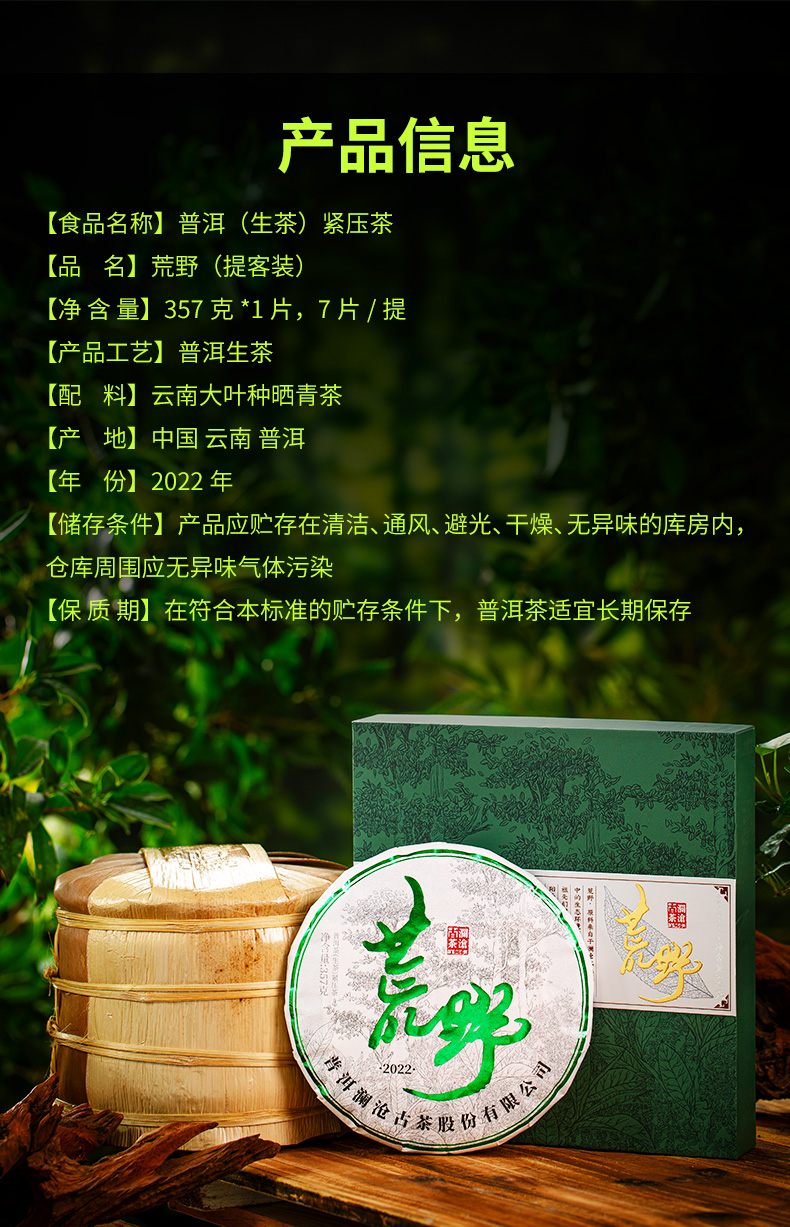 澜沧古茶2022年荒野大饼生茶普洱茶云南茶叶野放老树