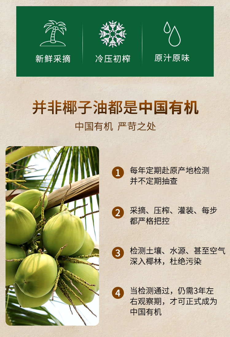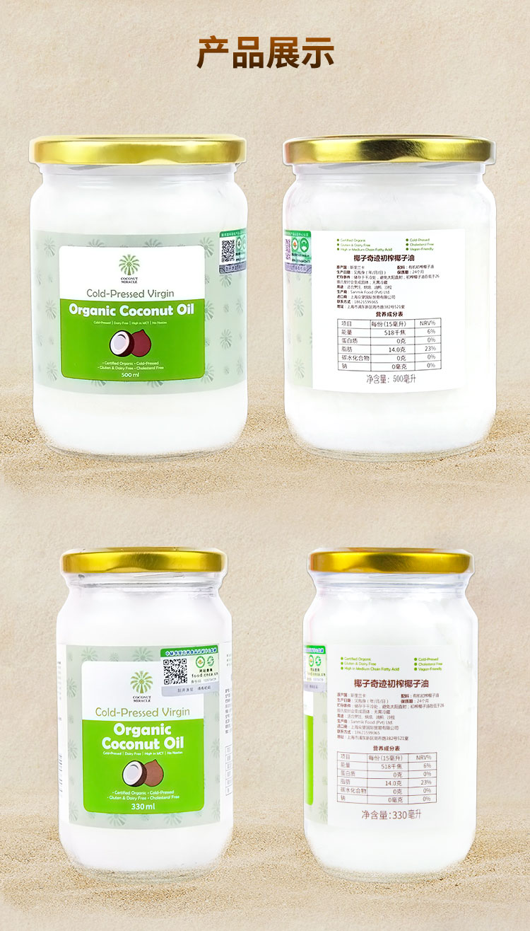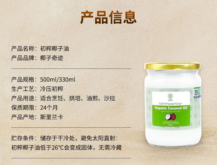 有机初榨椰子油330ML/瓶