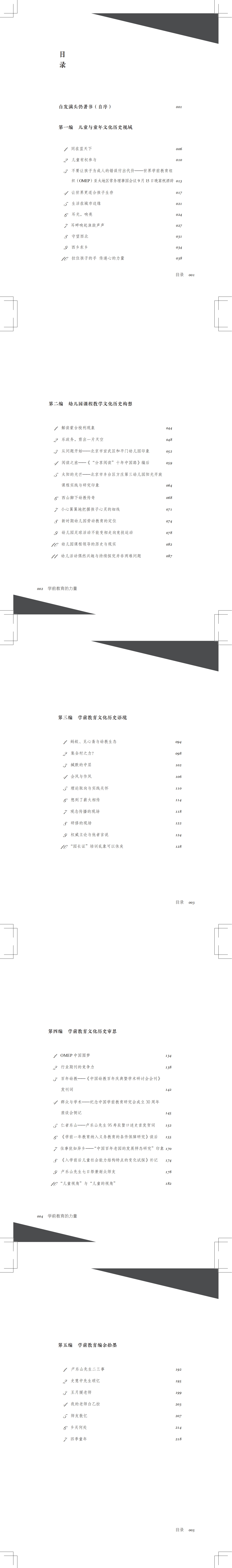 本书从儿童与童年文化历史视域、幼儿园课程教学文化历史构想、学前教育文化历史语境、学前教育文化历史审思、学前教育编余拾墨等5个角度,聚焦儿童与童年、幼儿园课程与教学、学前教育发展历程、学前教育发展中的人和事等主题,用随笔的方式讲述了一个个重要的历史瞬间,一件件行业大事。