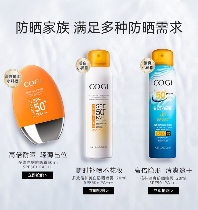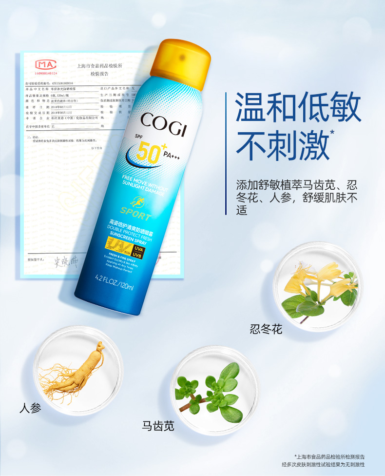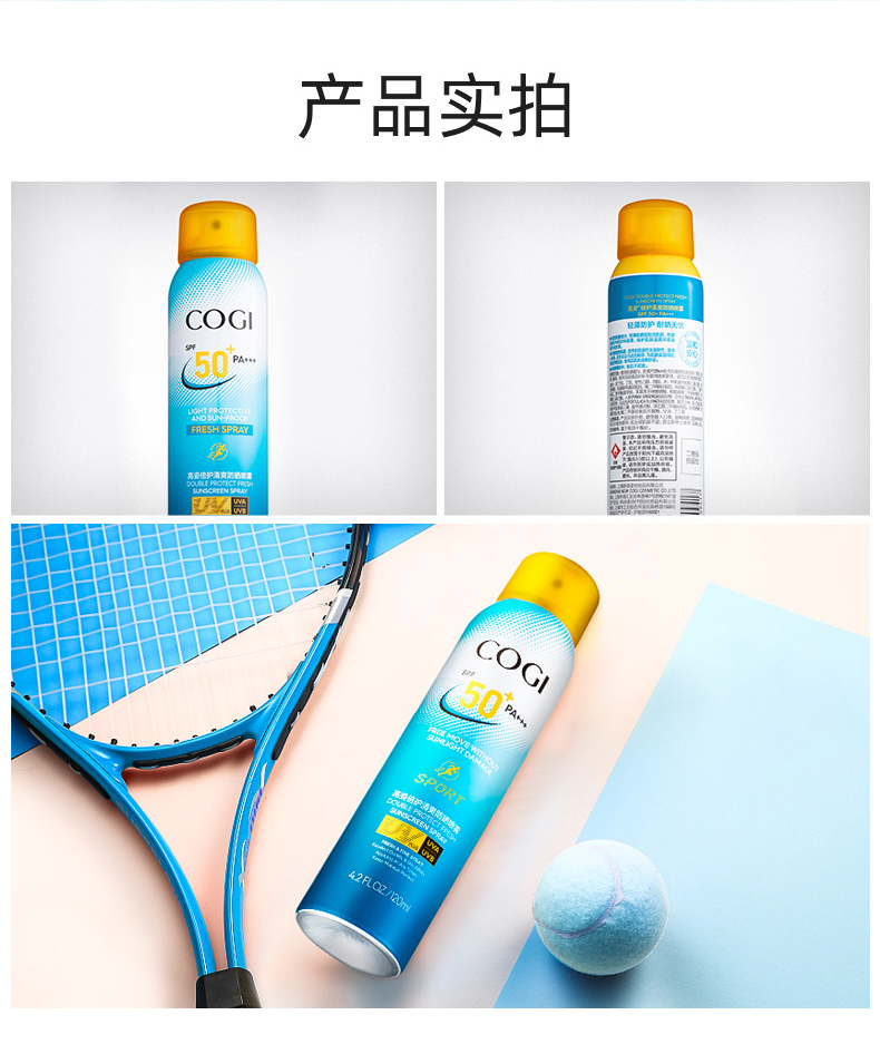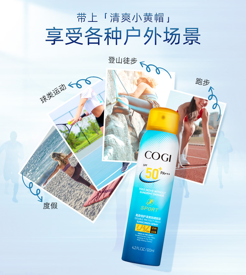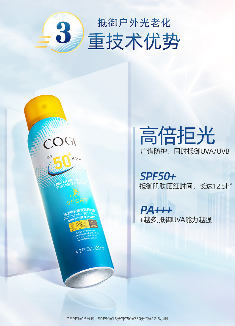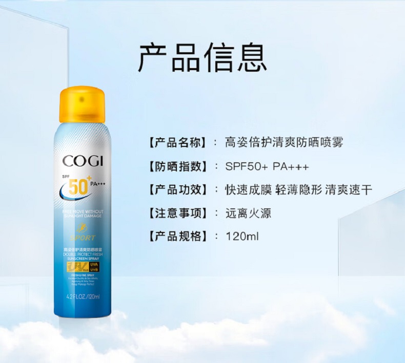 高姿(COGI)倍护清爽防晒喷雾SPF50+PA+++清爽不油腻补水防晒霜户外运动型 120ml