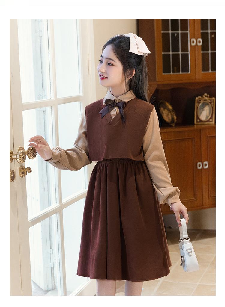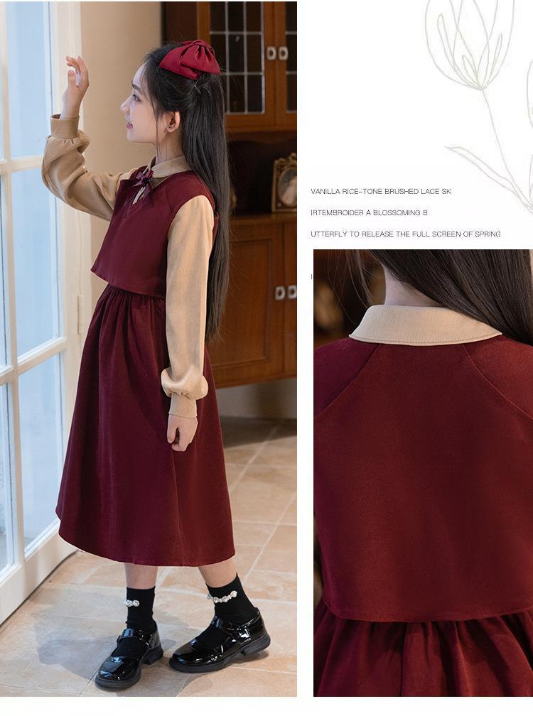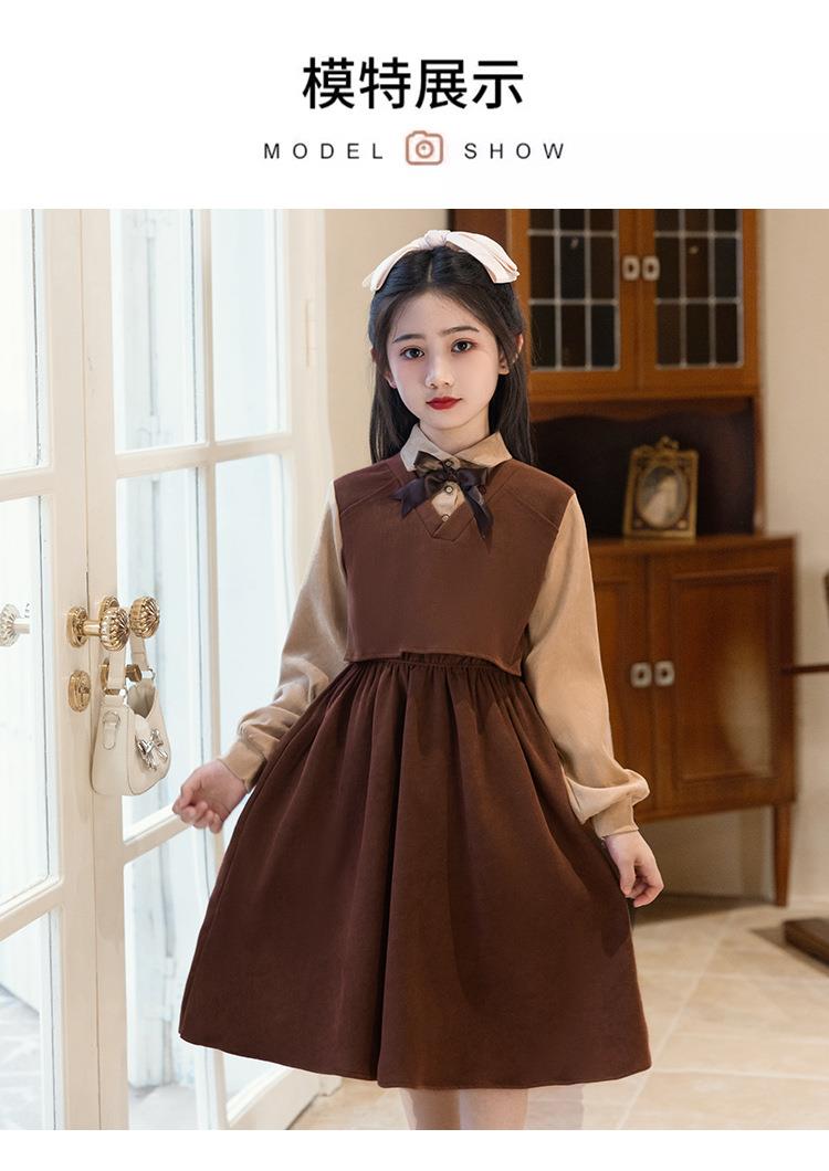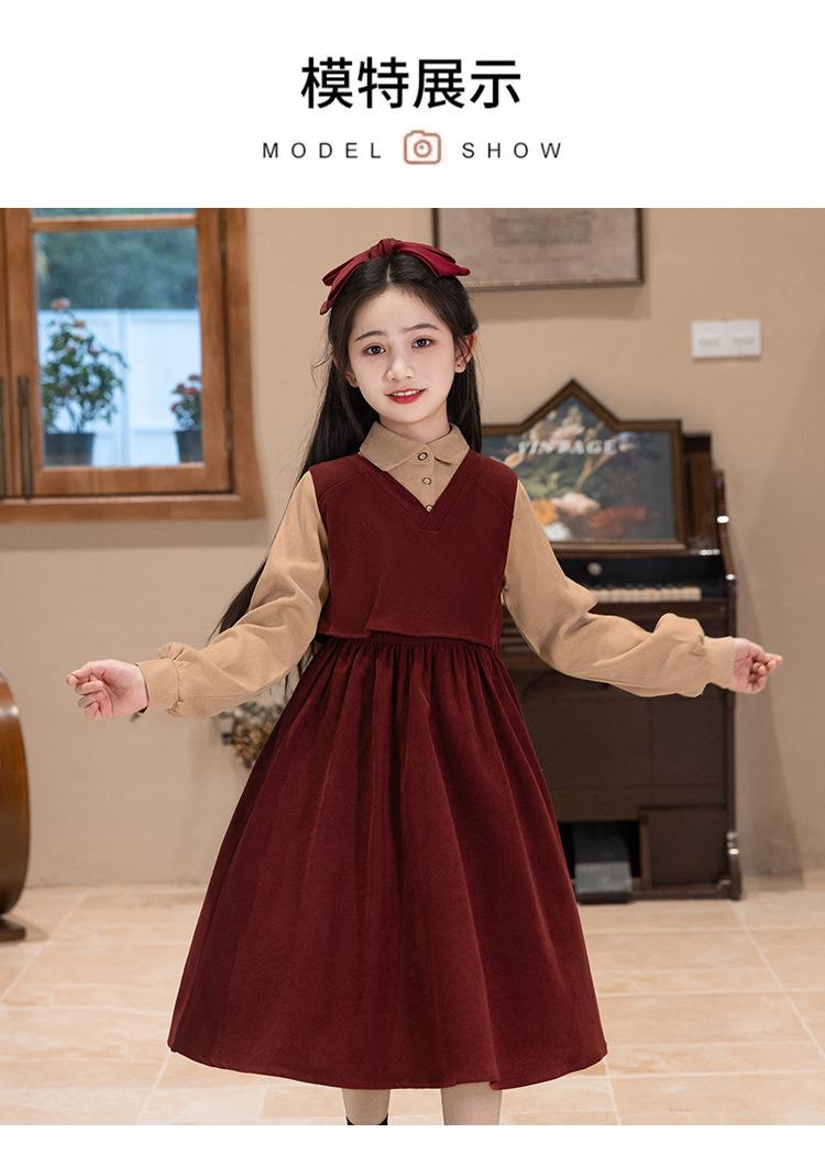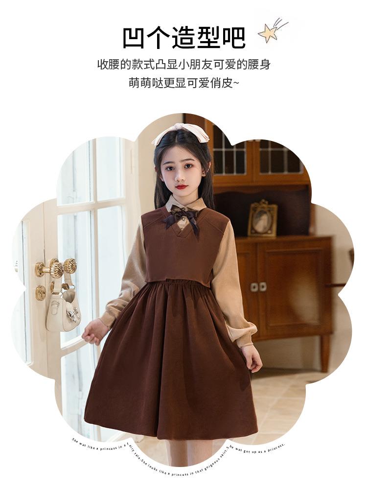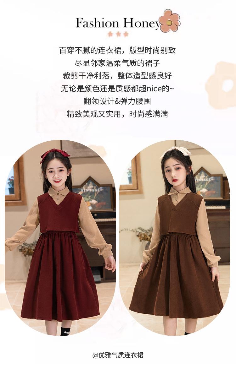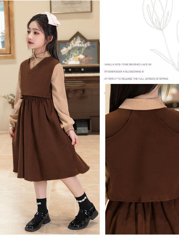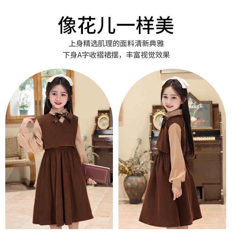 中大童女孩春秋季新款时髦学院风POLO领假两件连衣裙休闲秋装裙子