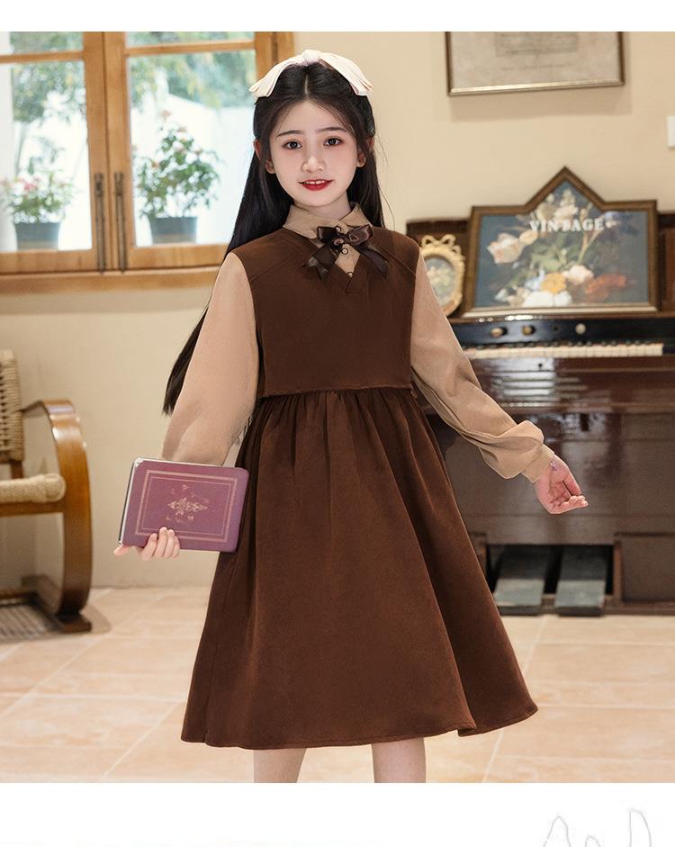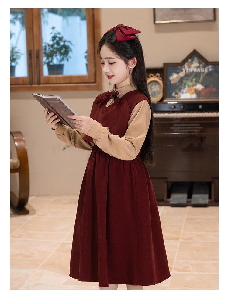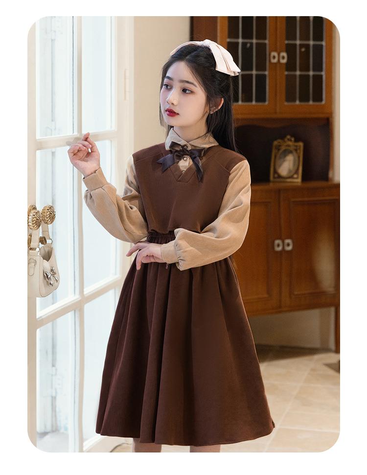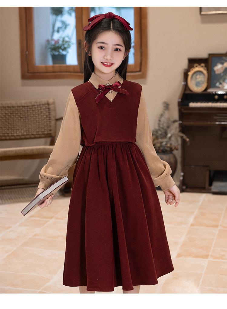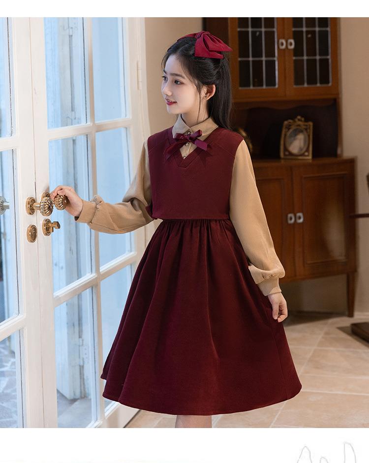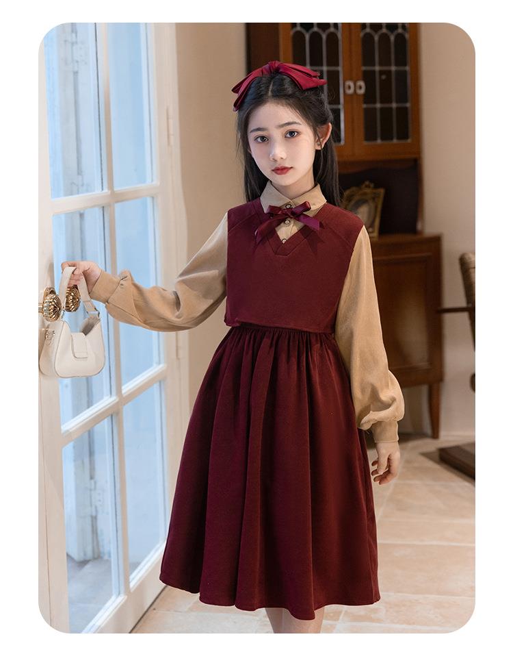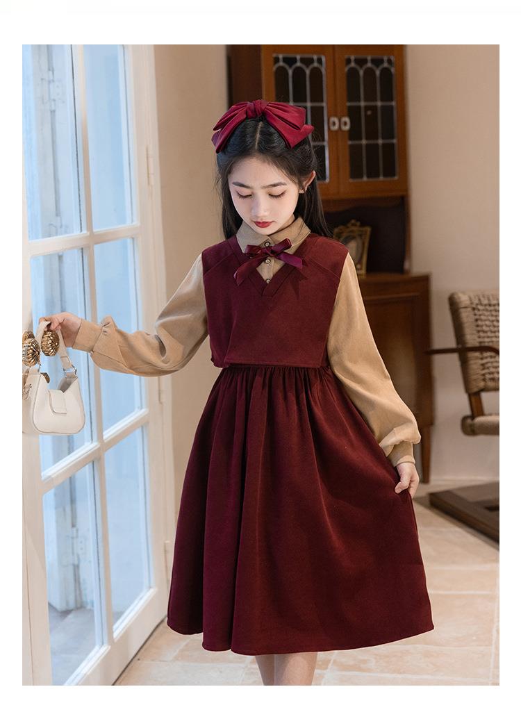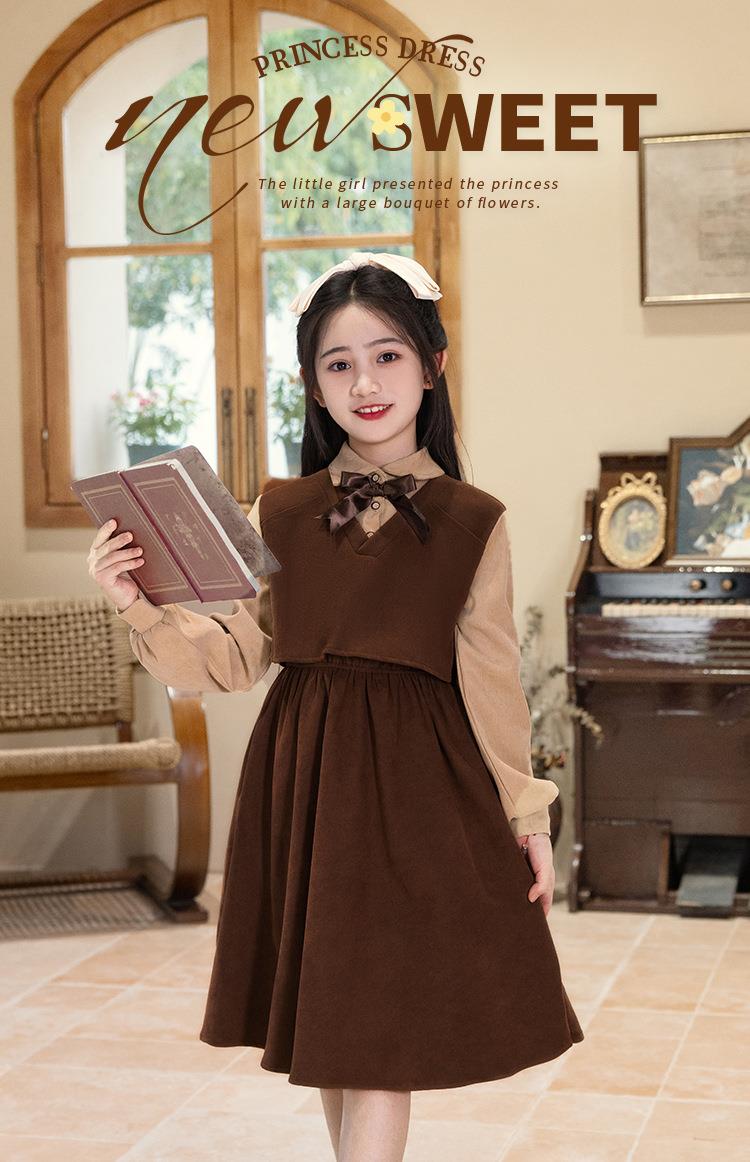 中大童女孩春秋季新款时髦学院风POLO领假两件连衣裙休闲秋装裙子
