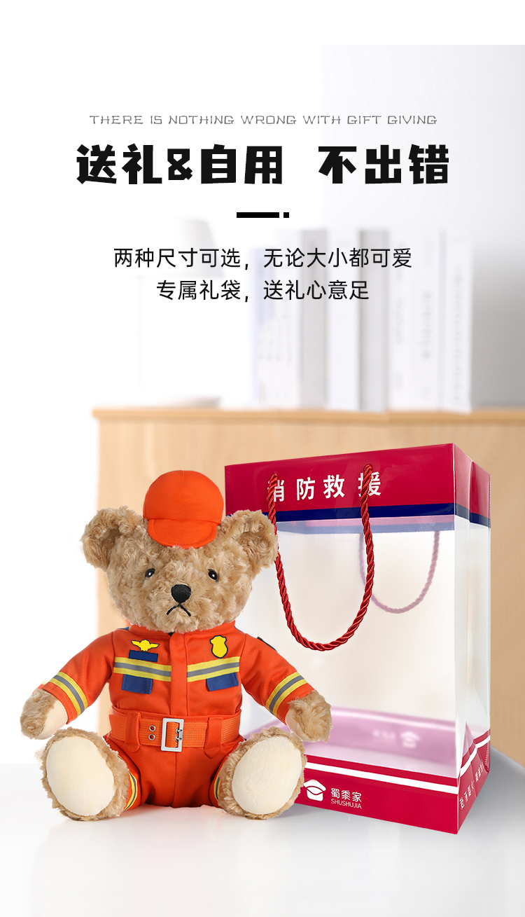 【实付满199送钥匙扣】【坐姿消防熊辉辉】毛绒小熊公仔玩具服装可脱卸毛绒玩偶送礼礼品礼物