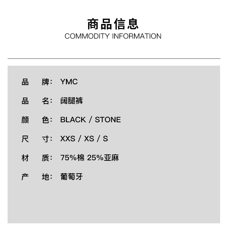 YMC DEADBEAT TROUSER 女装日本棉麻面料阔腿裤