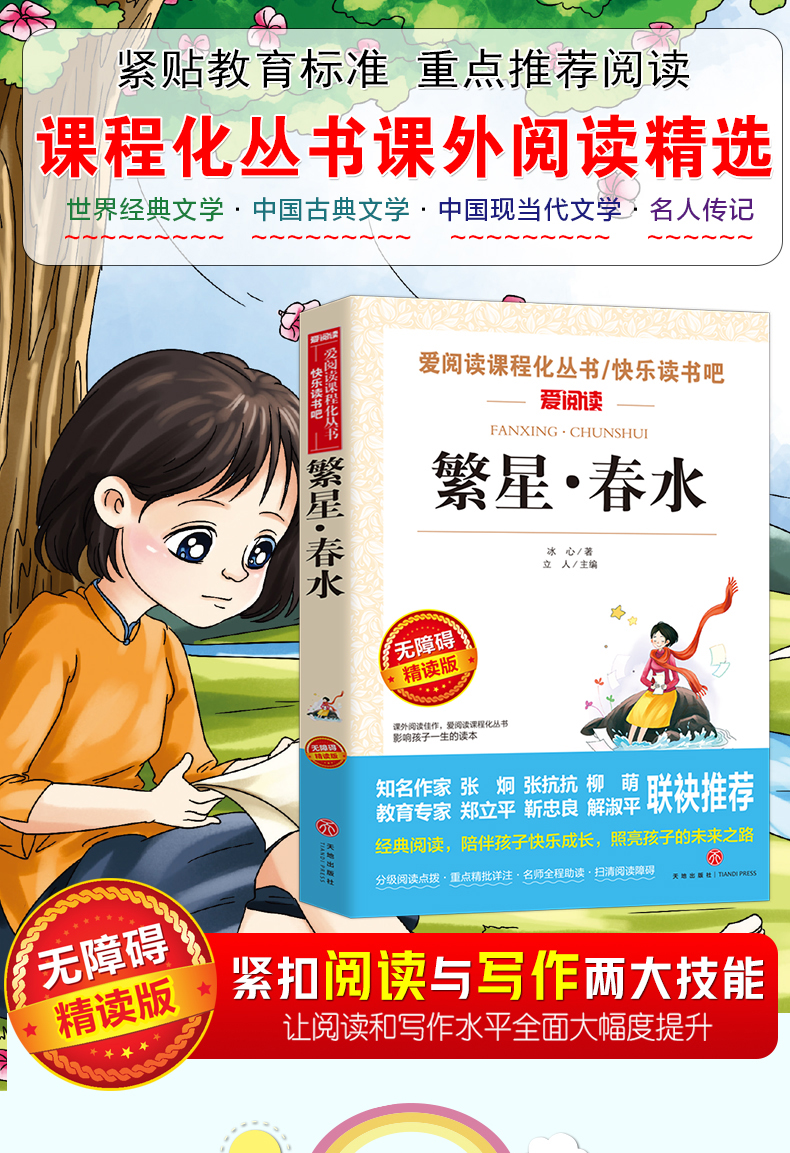 冰心作品全集小学三部曲3册诗集繁星春水正版原著的寄小读者儿童文学 三四年级小学生诗歌集散文集现代诗读本小桔灯小橘灯书籍