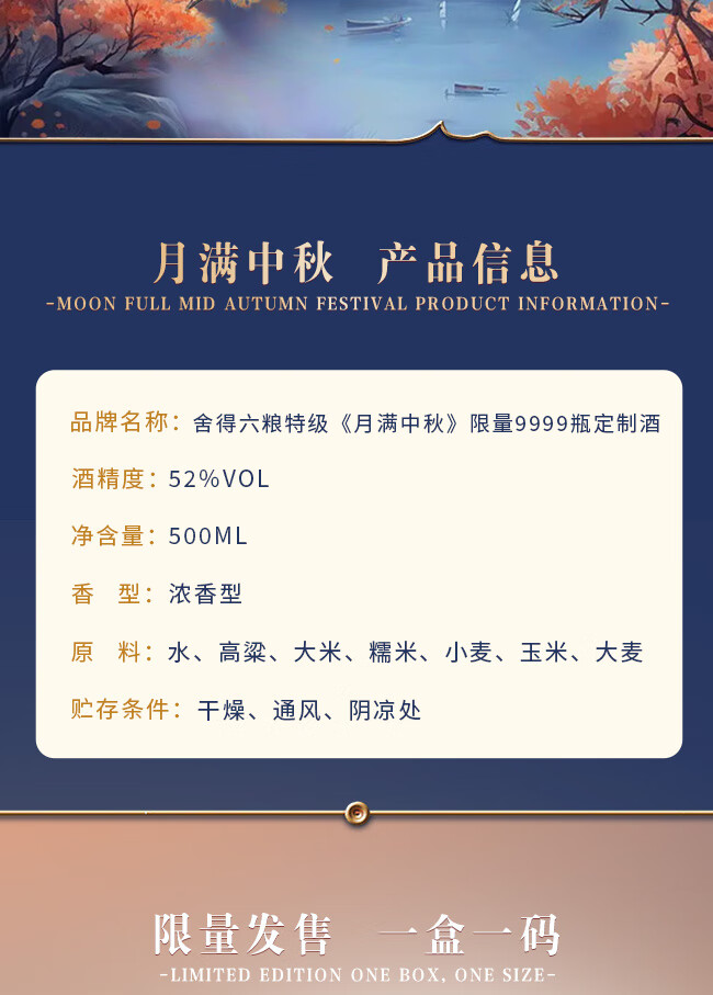 【双锦】舍得六粮特级《月满中秋》限量版定制酒52%VOL 500ml【酒库云】