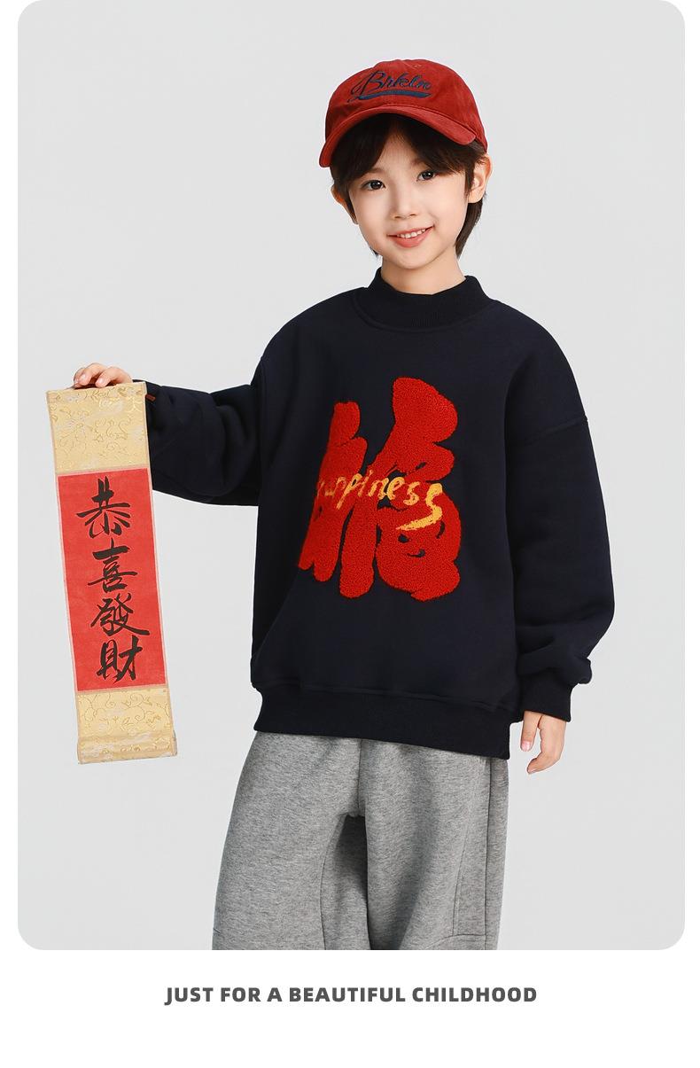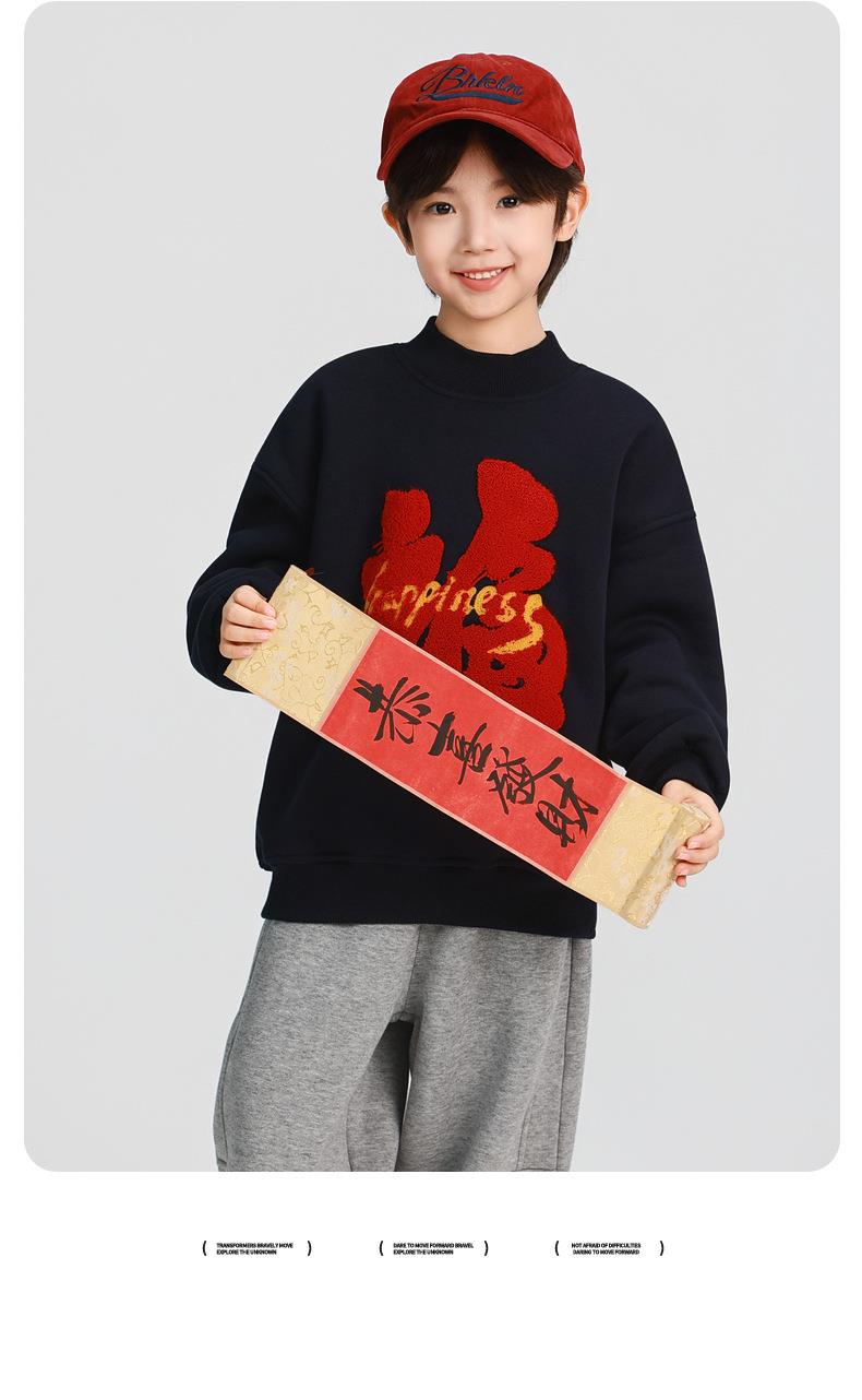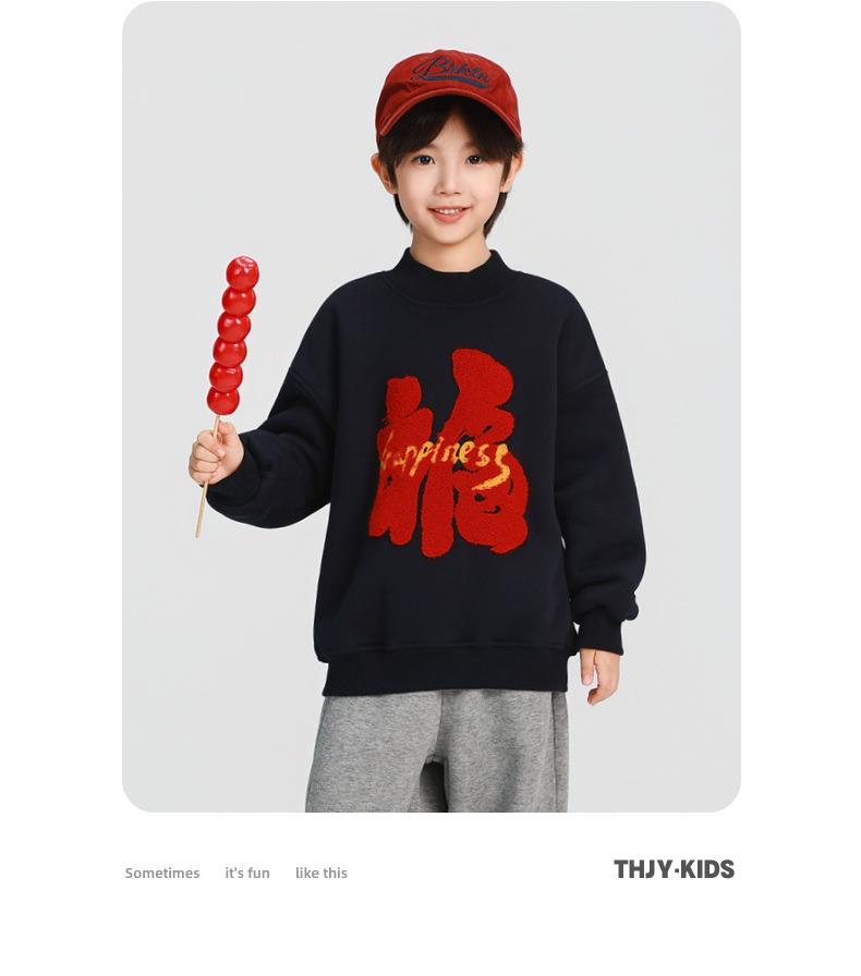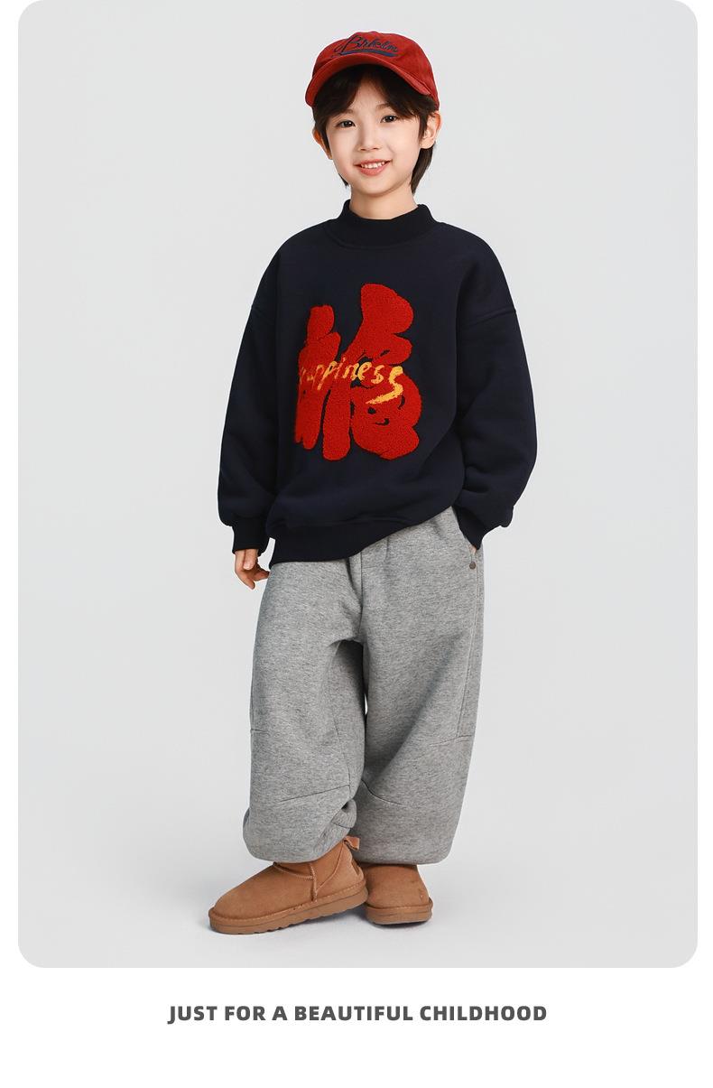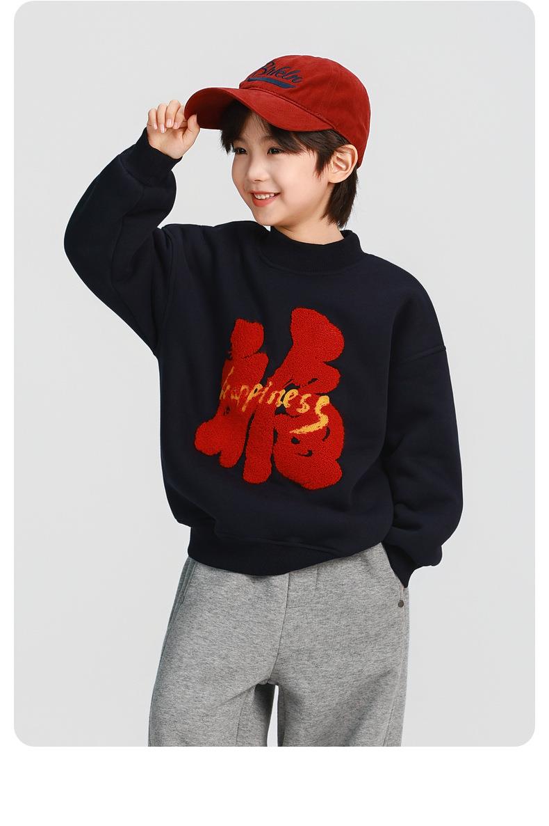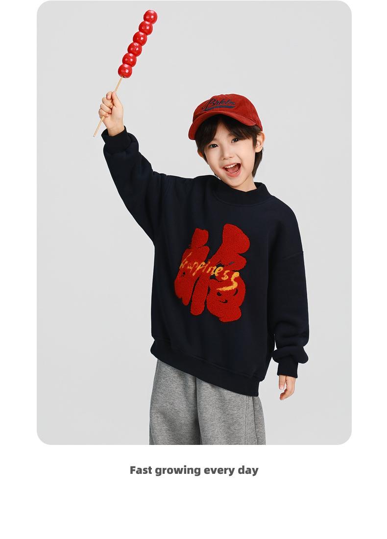男童加厚卫衣2025冬装新款秋冬款儿童男孩圆领加绒加厚保暖打底衫