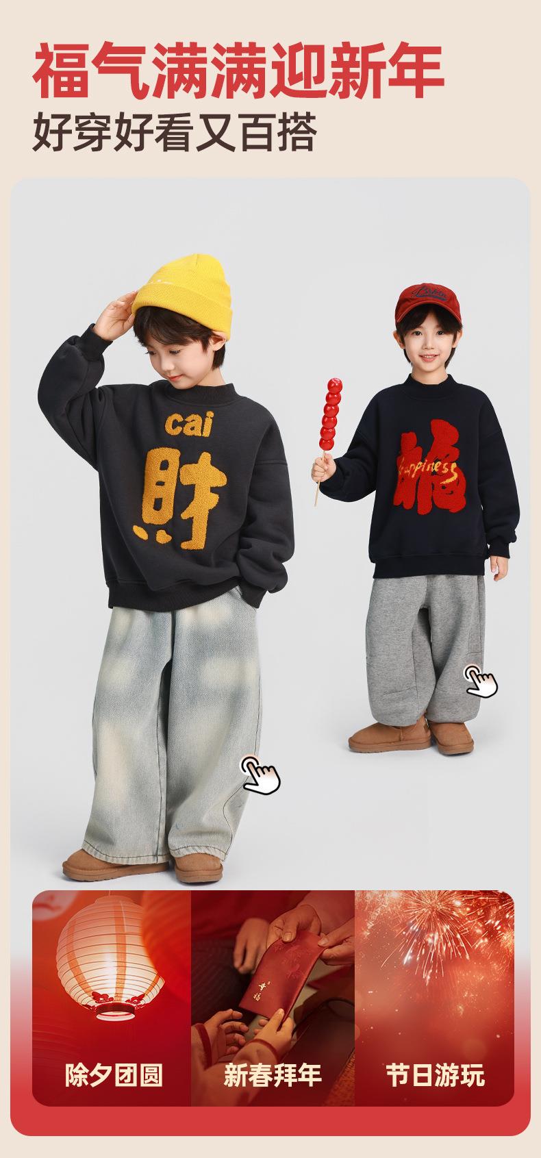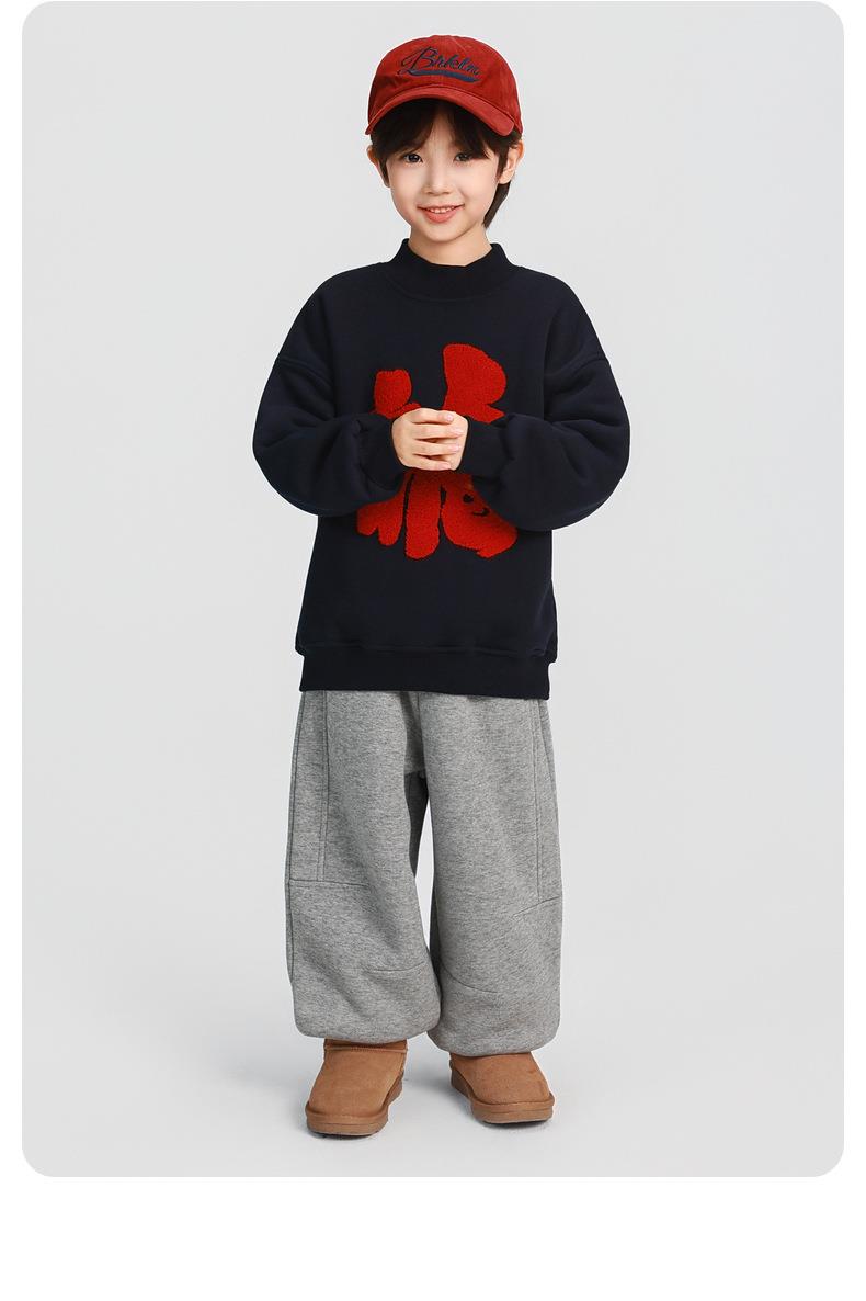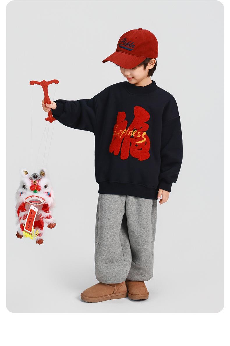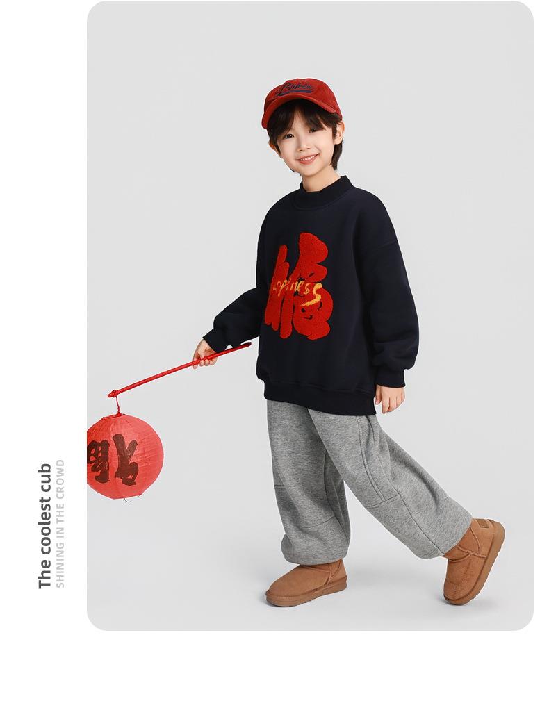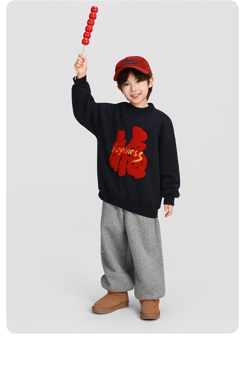 男童加厚卫衣2025冬装新款秋冬款儿童男孩圆领加绒加厚保暖打底衫