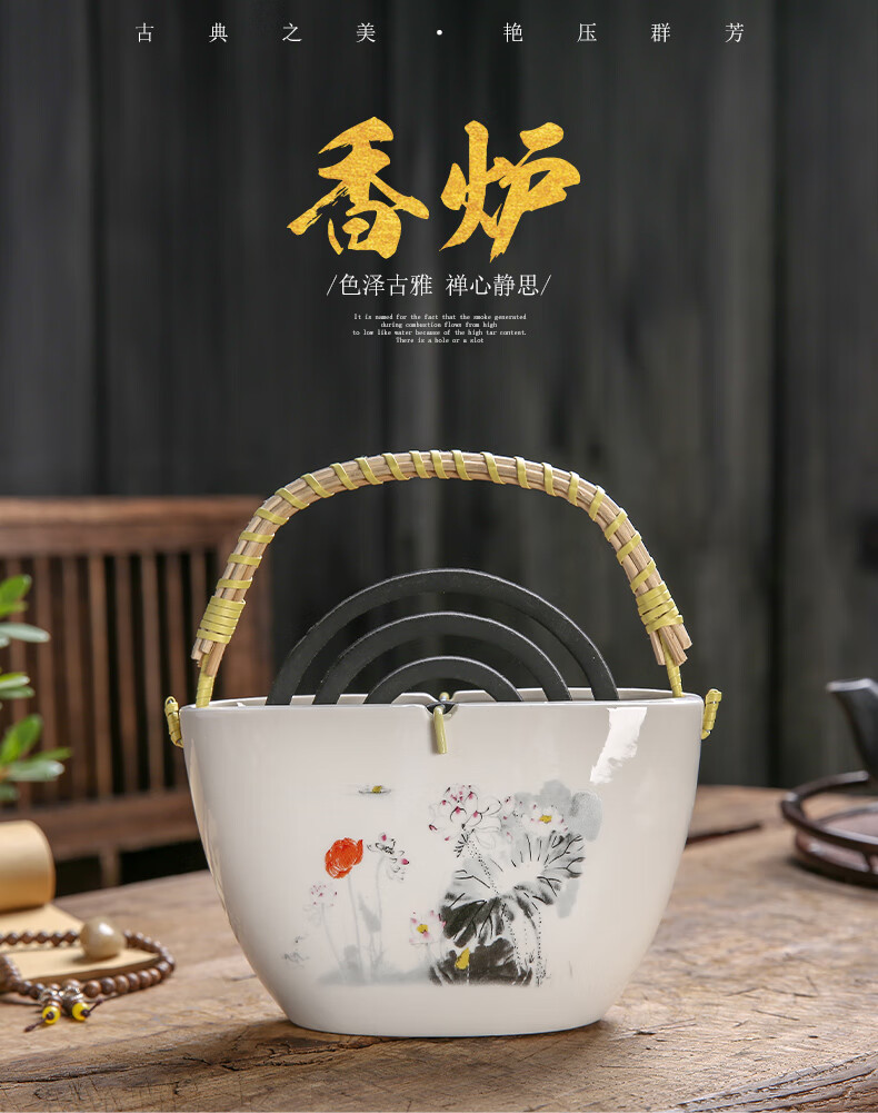 一鹿莲升 盘香炉 陶瓷香薰炉 莲花沉香