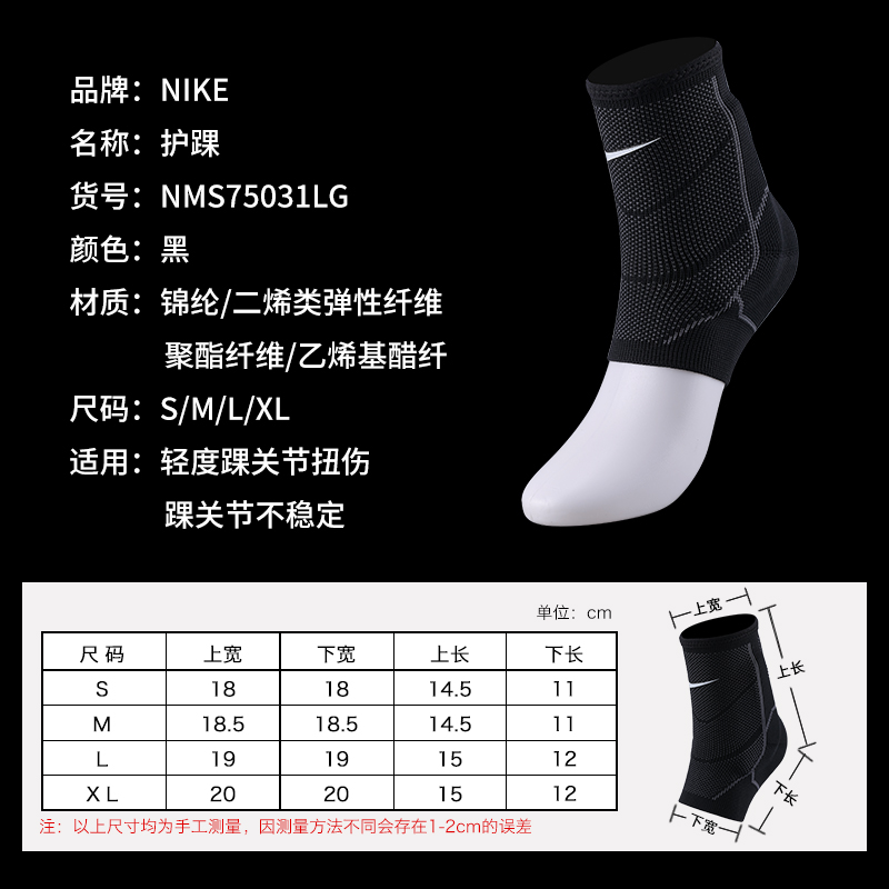 小李子正品NIKE耐克足球篮球运动护具训练透气护踝护脚男女防扭伤
