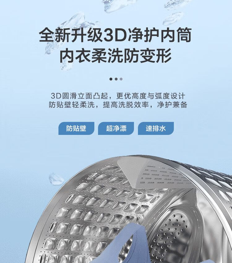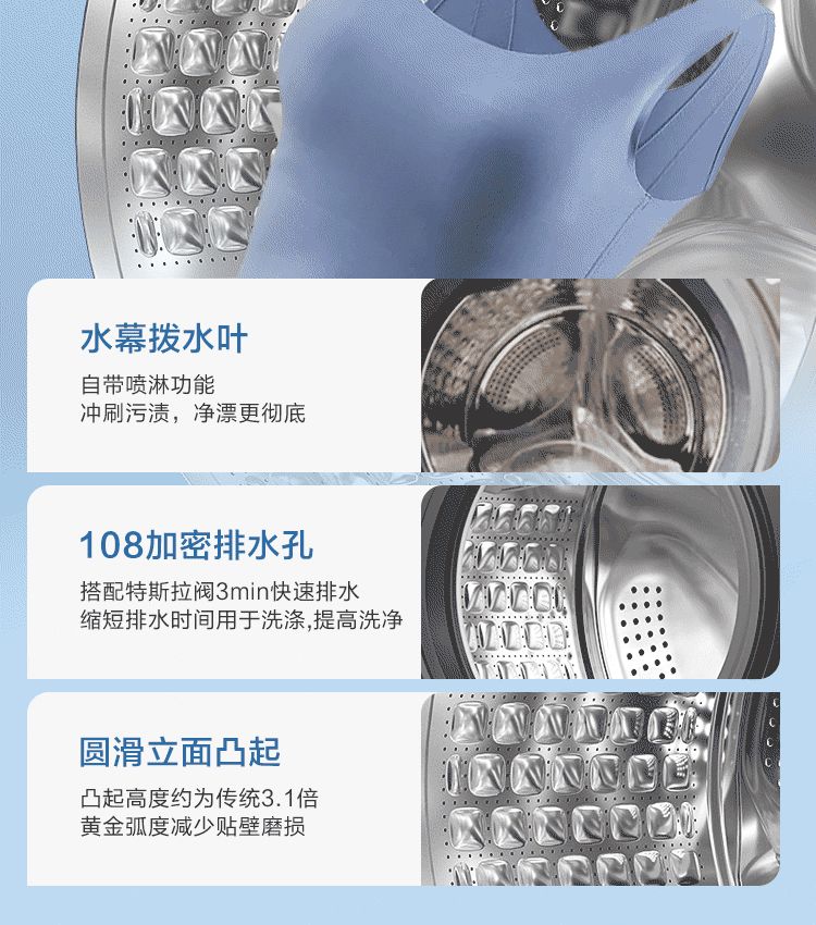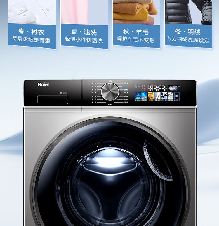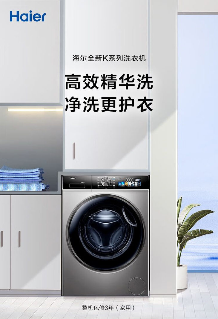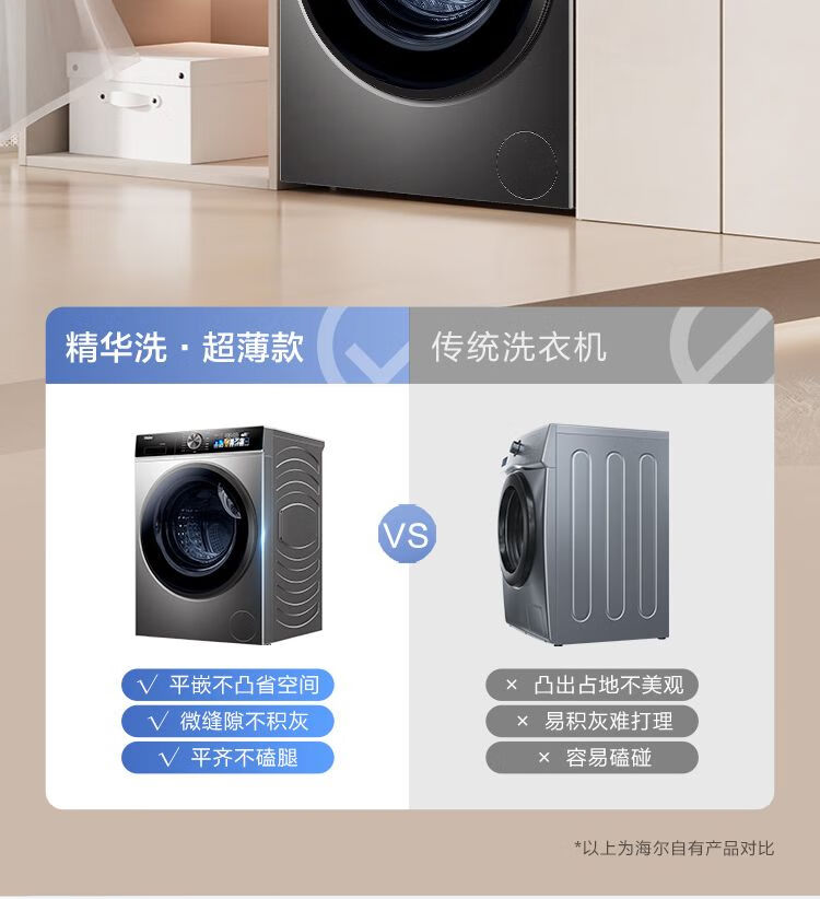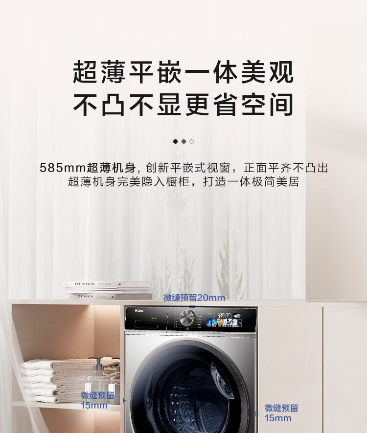 海尔(252056)十公斤大容量家用变频洗衣机超薄平嵌精华洗2.0巴氏除菌 XQG100-BD12516
