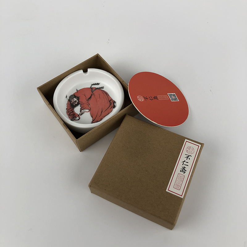 这三款烟灰缸器型由薛继业亲自设计,不仁斋自开模具,侧面上方下园,龙泉釉款只有灰池与地款处施釉,其余部分露出无釉瓷白,缸壁厚达6毫米,厚实稳重,仅留一个架烟槽,钟馗款适合男士,蜀葵款适合女士,专款专用。直径:9厘米 高:2.8厘米龙泉釉素款钟馗款蜀葵款