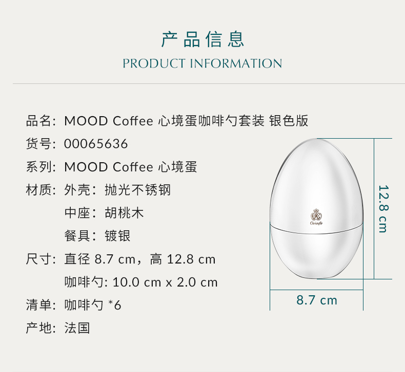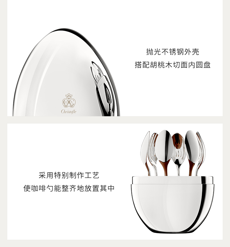 CHRISTOFLE 昆庭 MOOD Coffee 心境蛋咖啡勺套装 银色