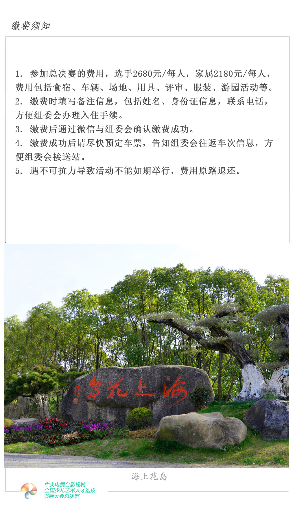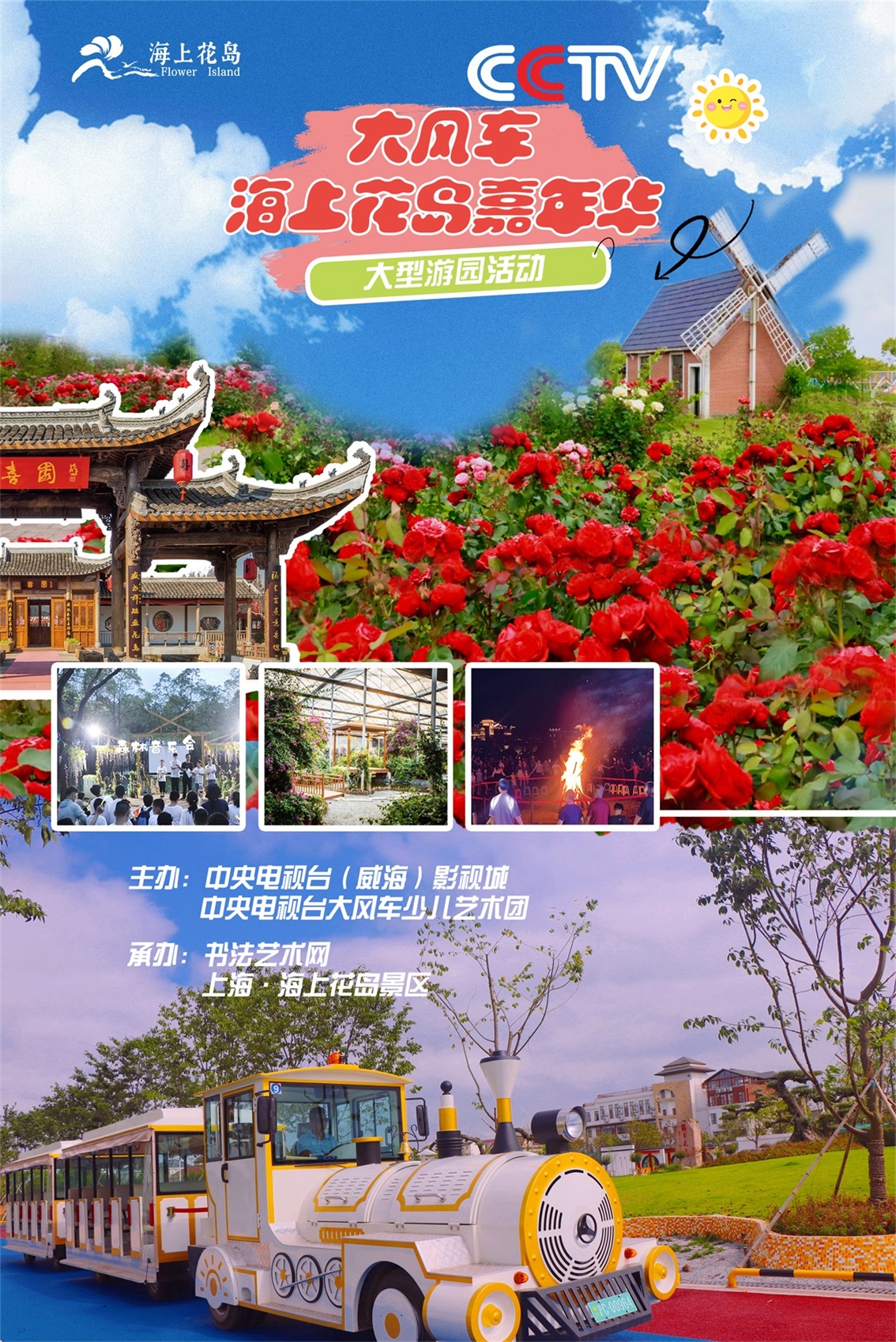 书画大会现场决赛、现场评比、现场颁奖8月17日“CCTV大风车——海上花岛嘉年华”大型游园活动