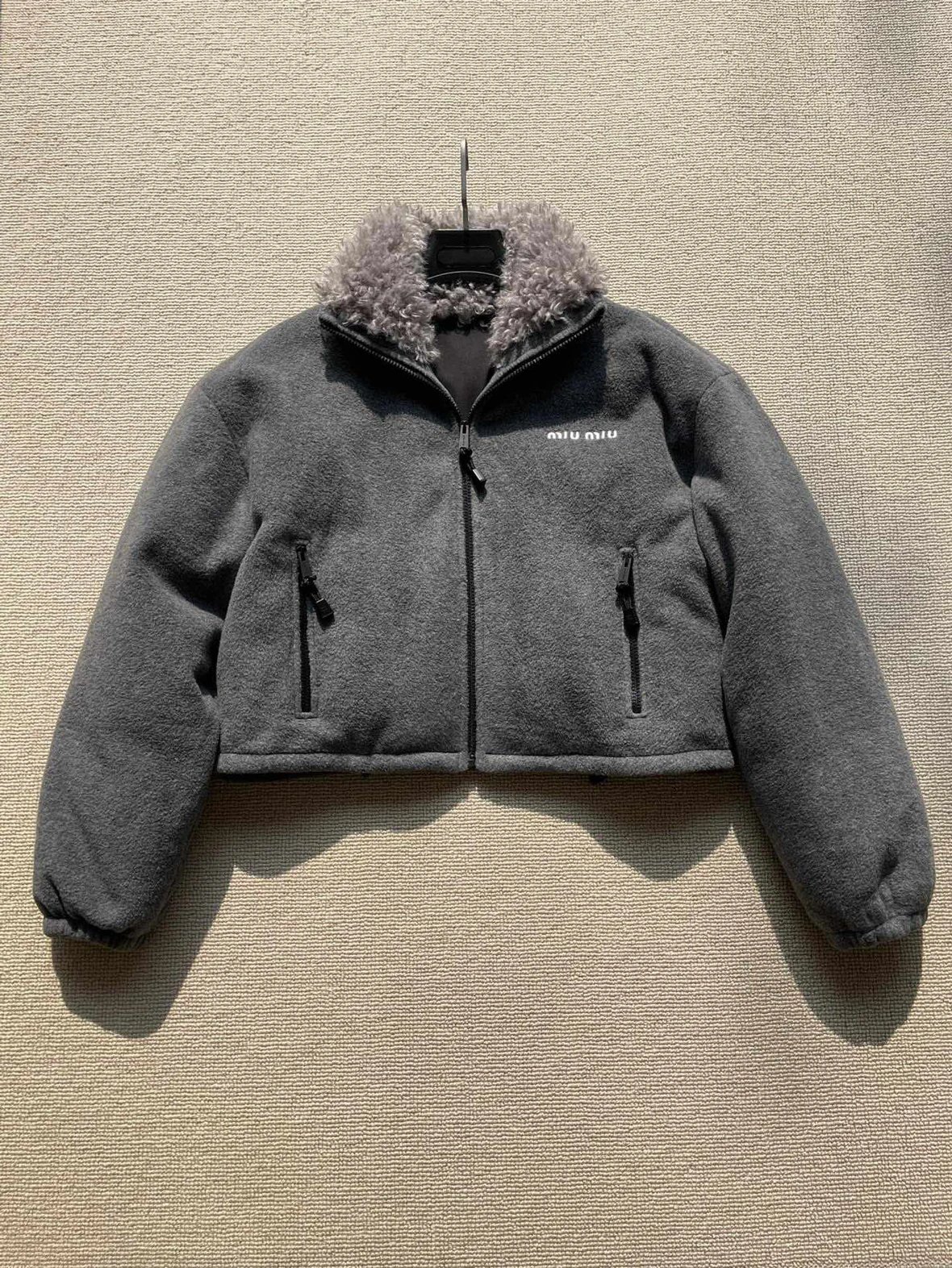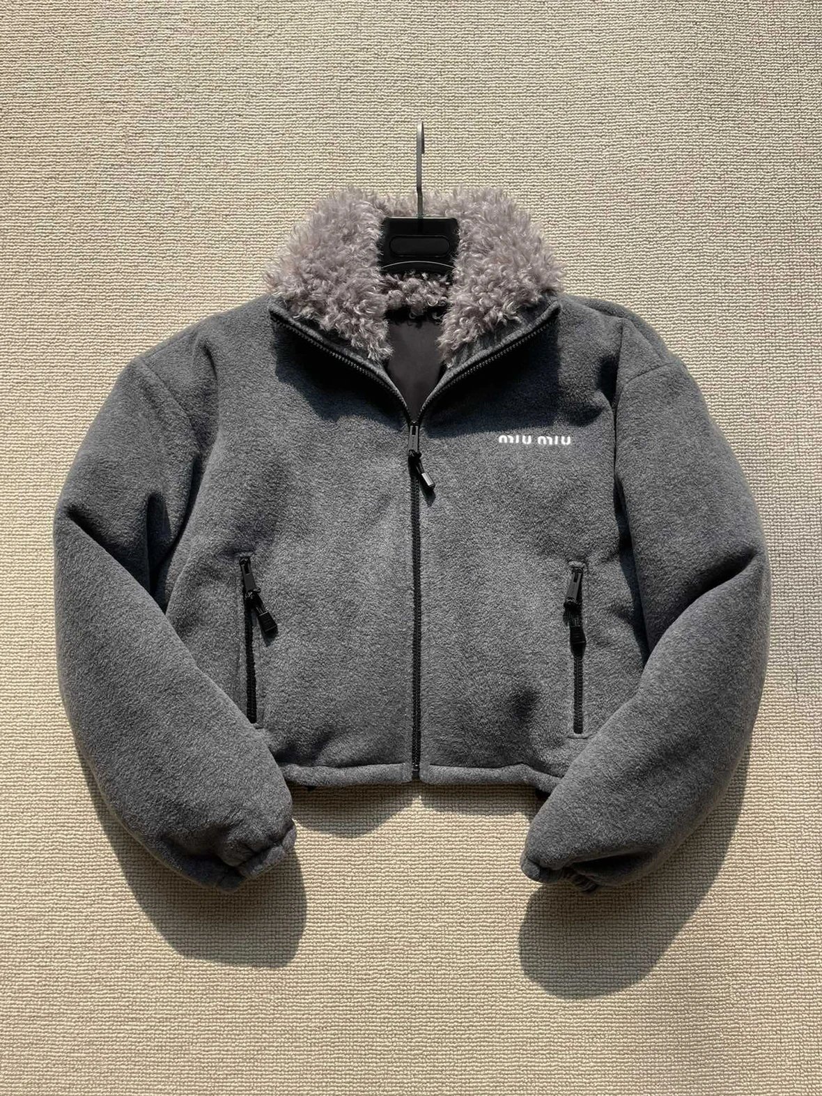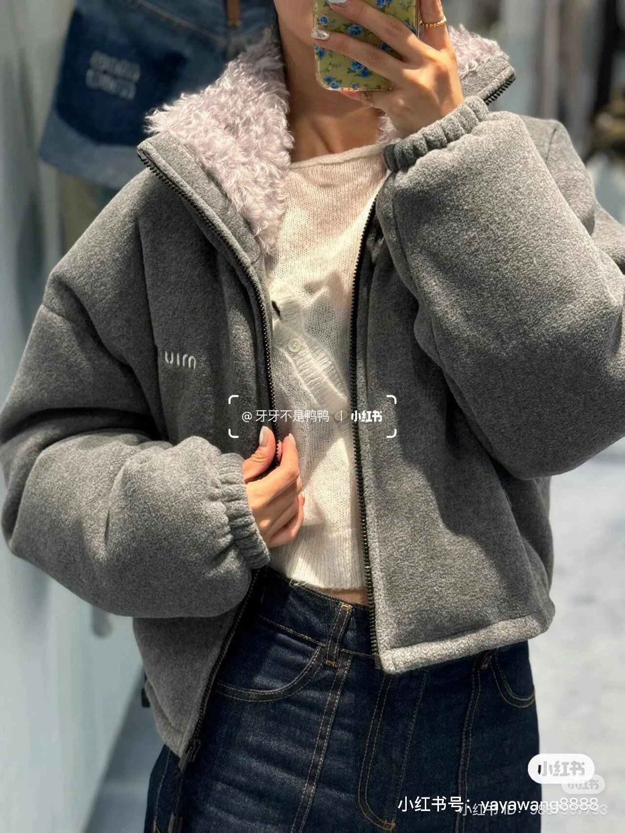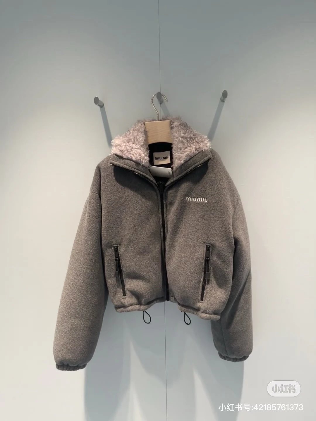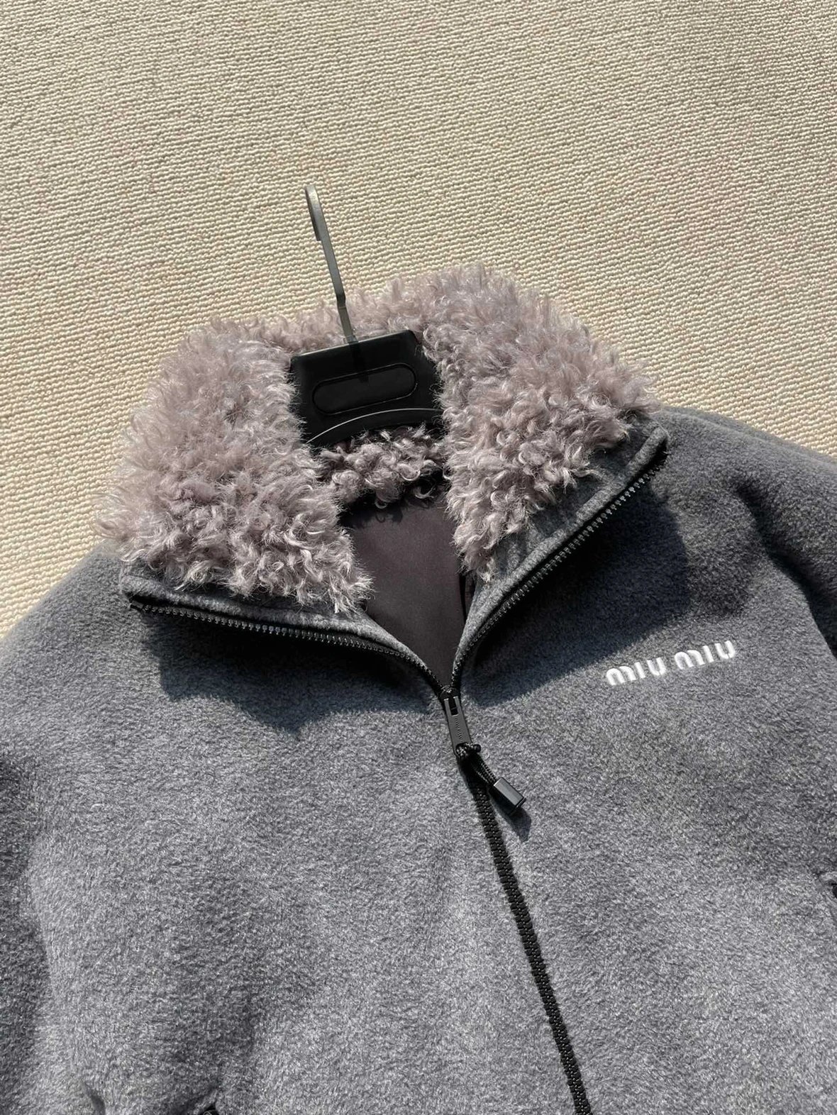 重磅渠道 miu摇粒绒毛领鹅绒服 白鹅绒短款羽绒服 皮草翻领