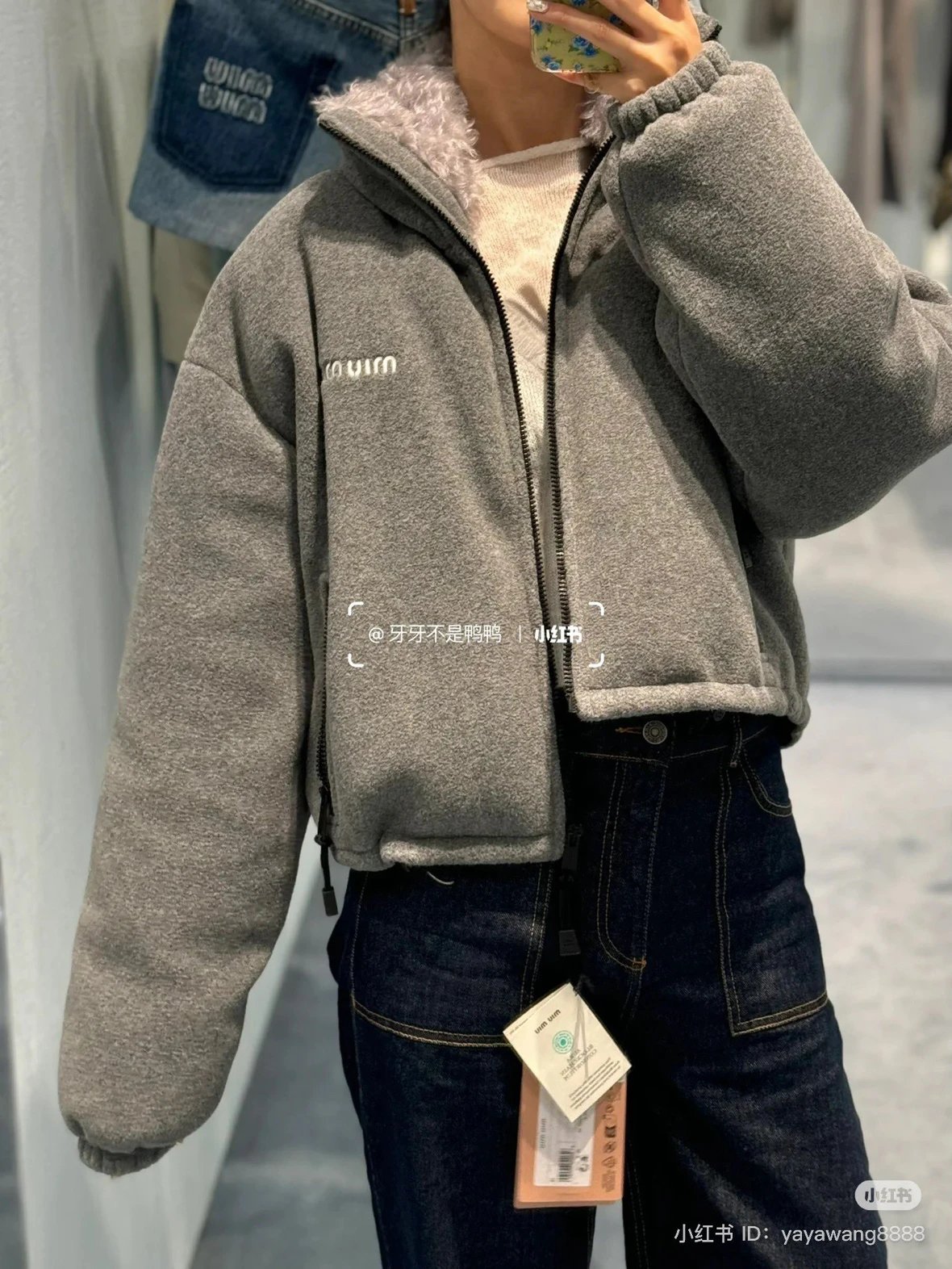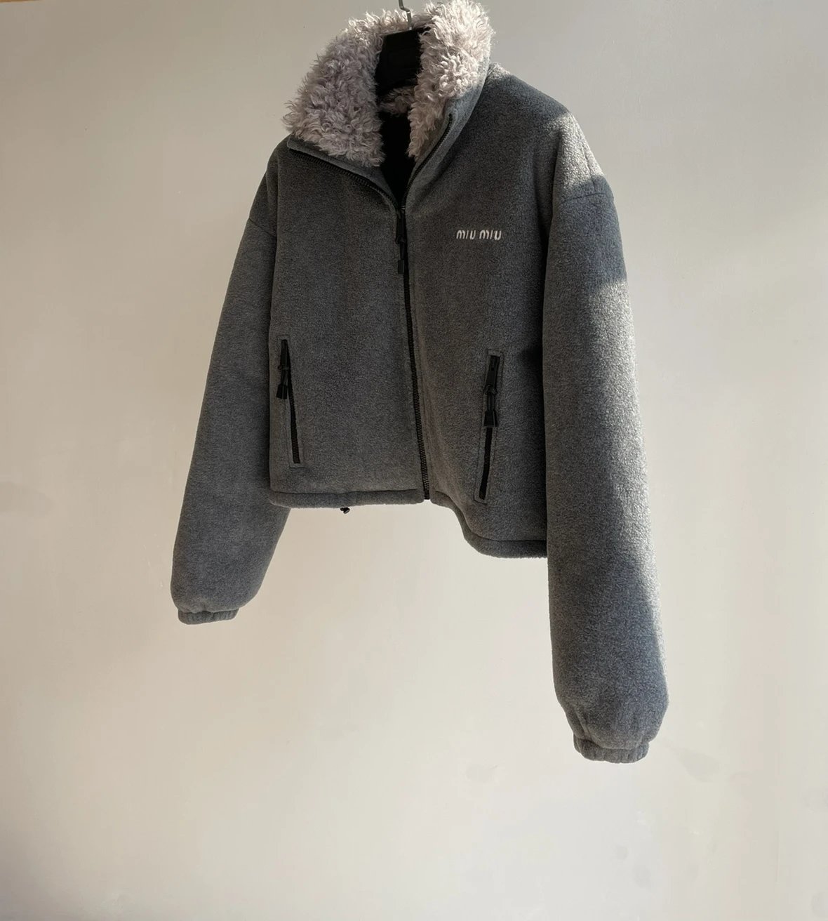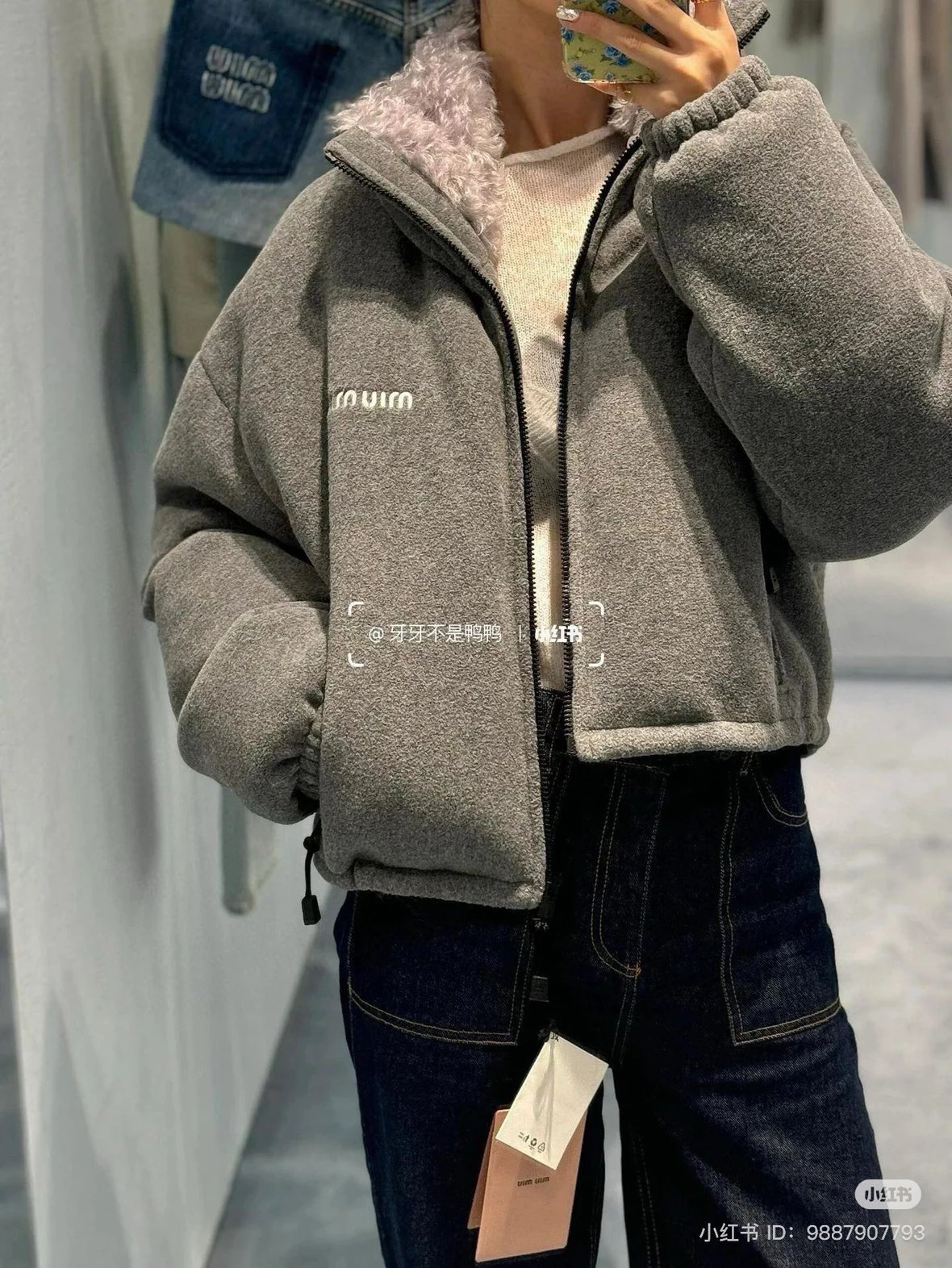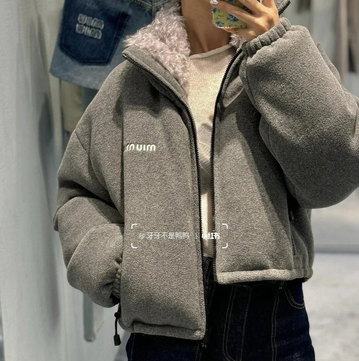 重磅渠道 miu摇粒绒毛领鹅绒服 白鹅绒短款羽绒服 皮草翻领