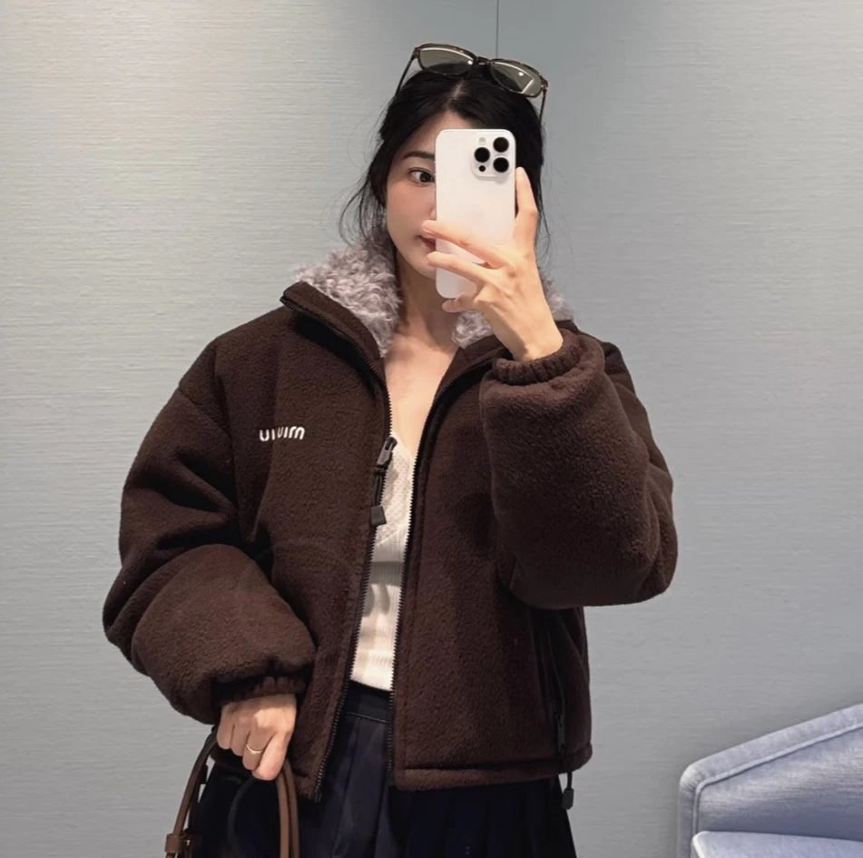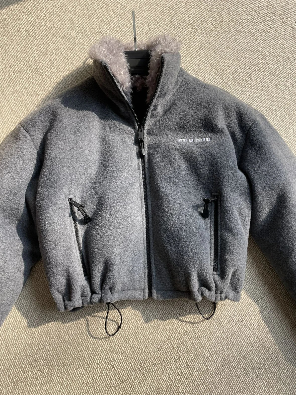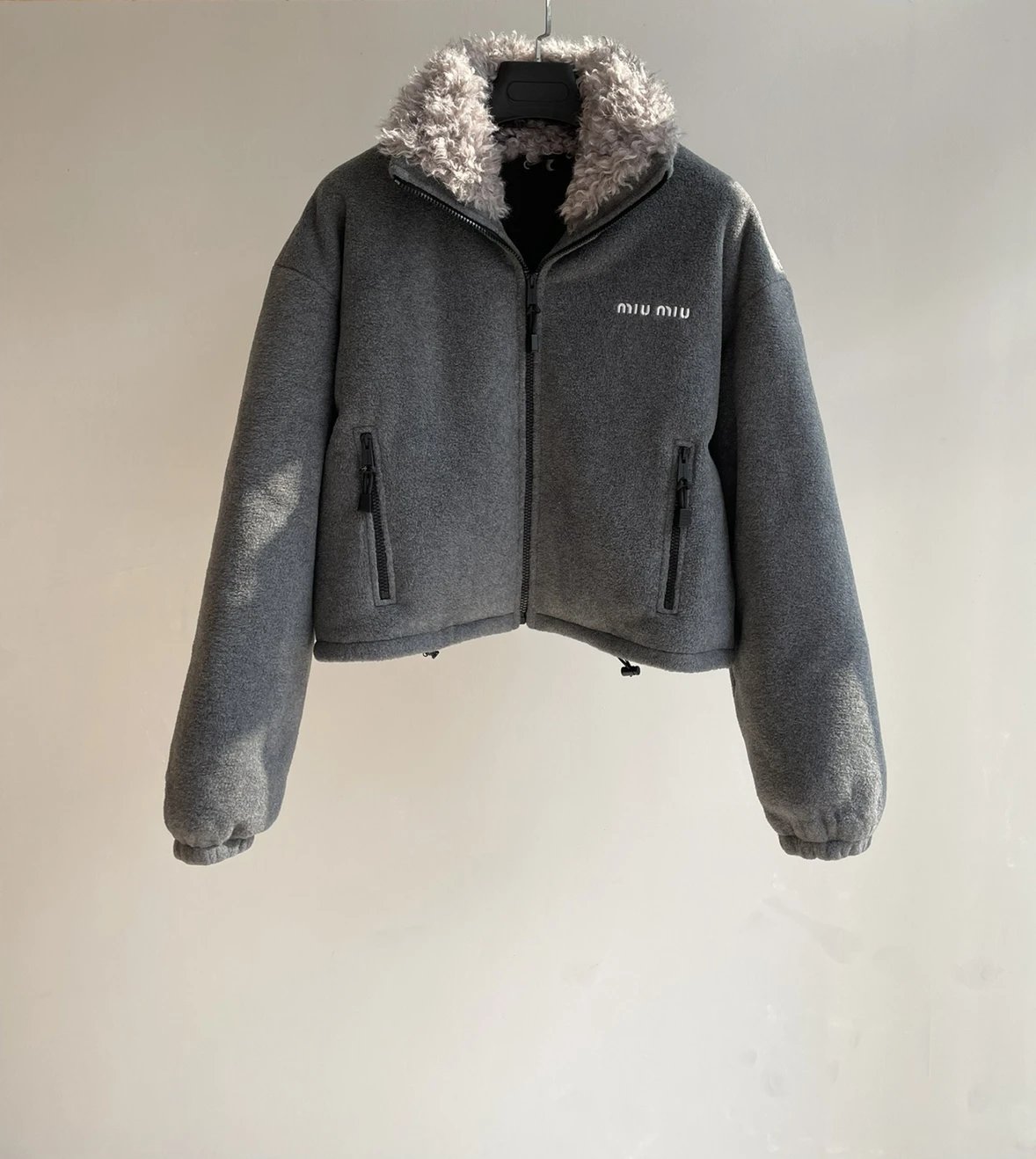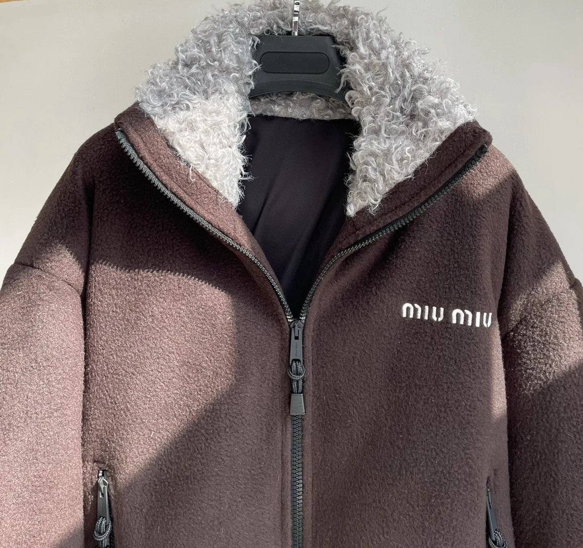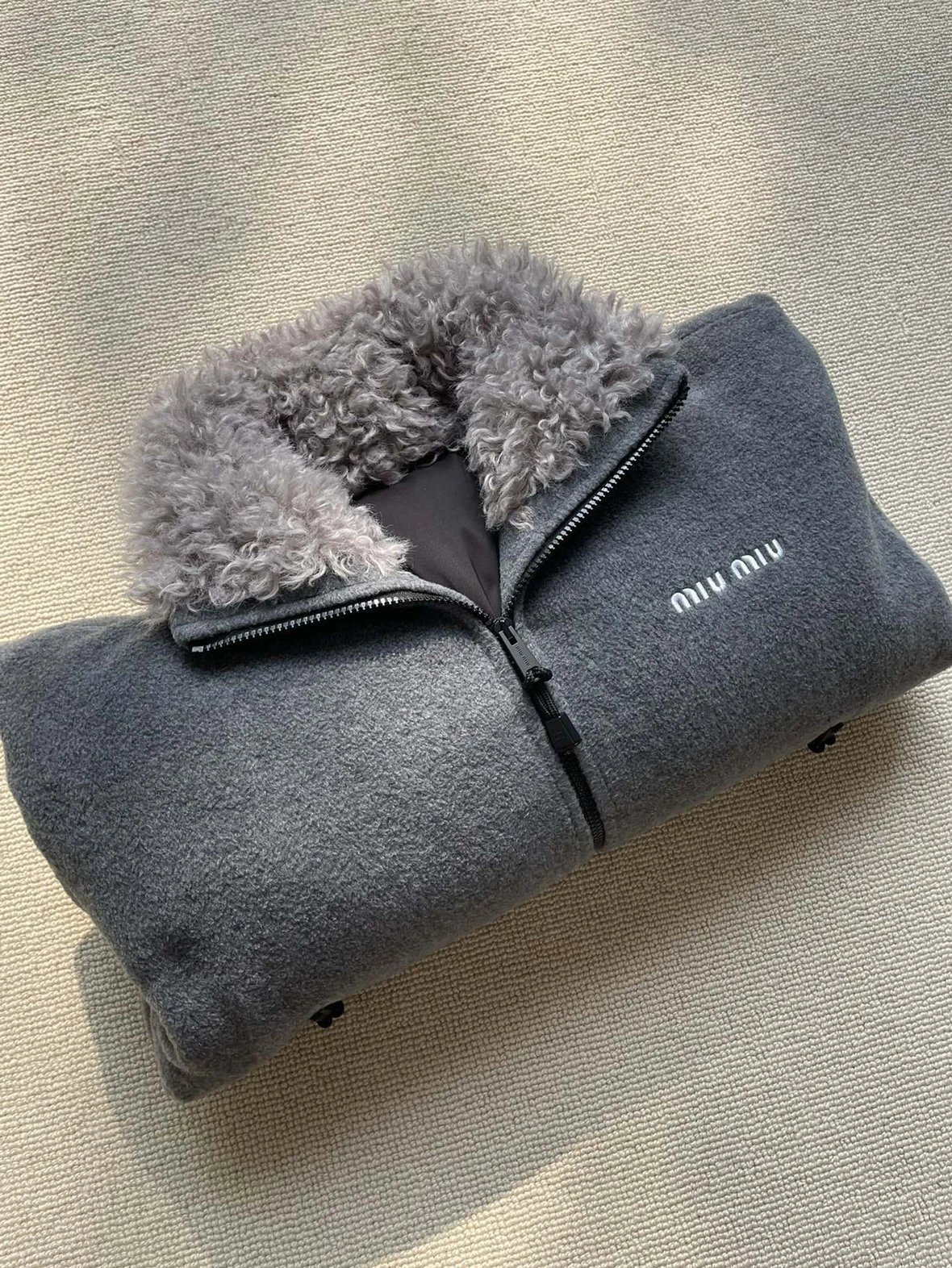 重磅渠道 miu摇粒绒毛领鹅绒服 白鹅绒短款羽绒服 皮草翻领
