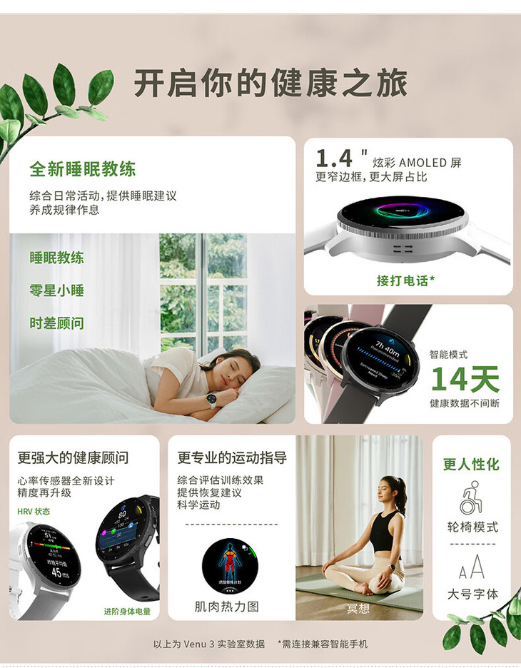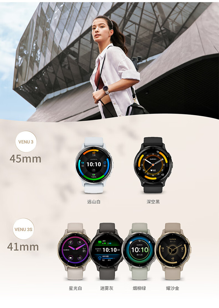 佳明(GARMIN)Venu3S 运动手表 智能手表 触屏腕表 时尚运动腕表
