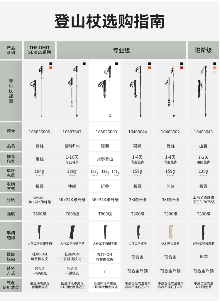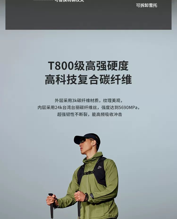 【轻羽】伯希和户外越野杖专业碳纤维登山手杖折叠超轻跑步装备