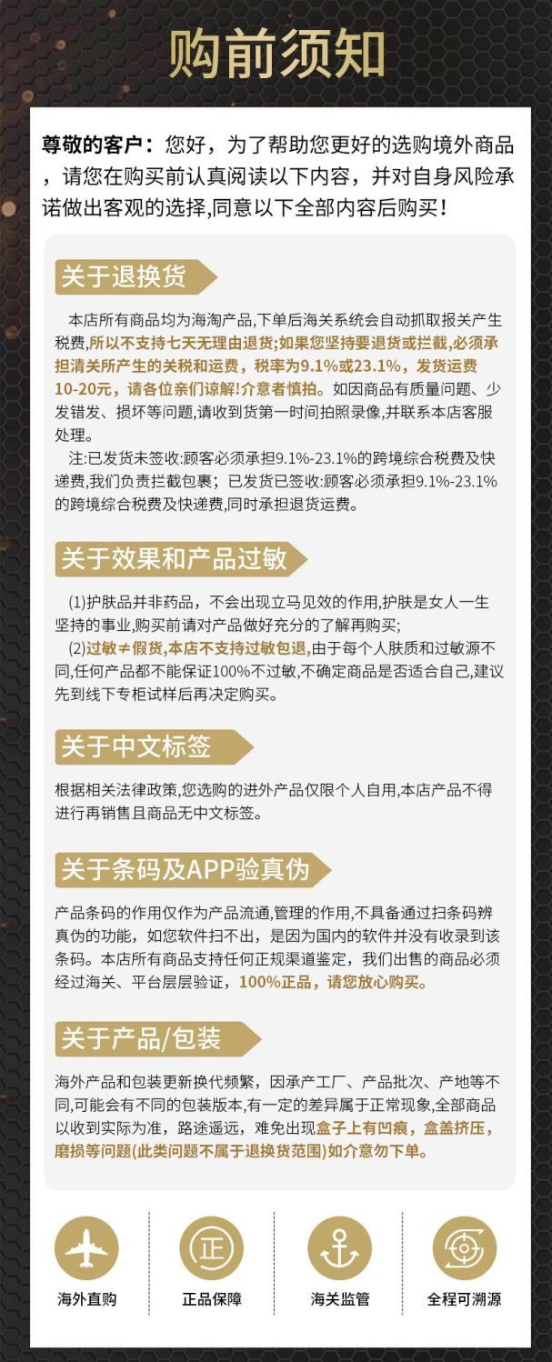 商品由保税区正规清关发货,购买后已代付税金,非质量问题不支持退货退款。