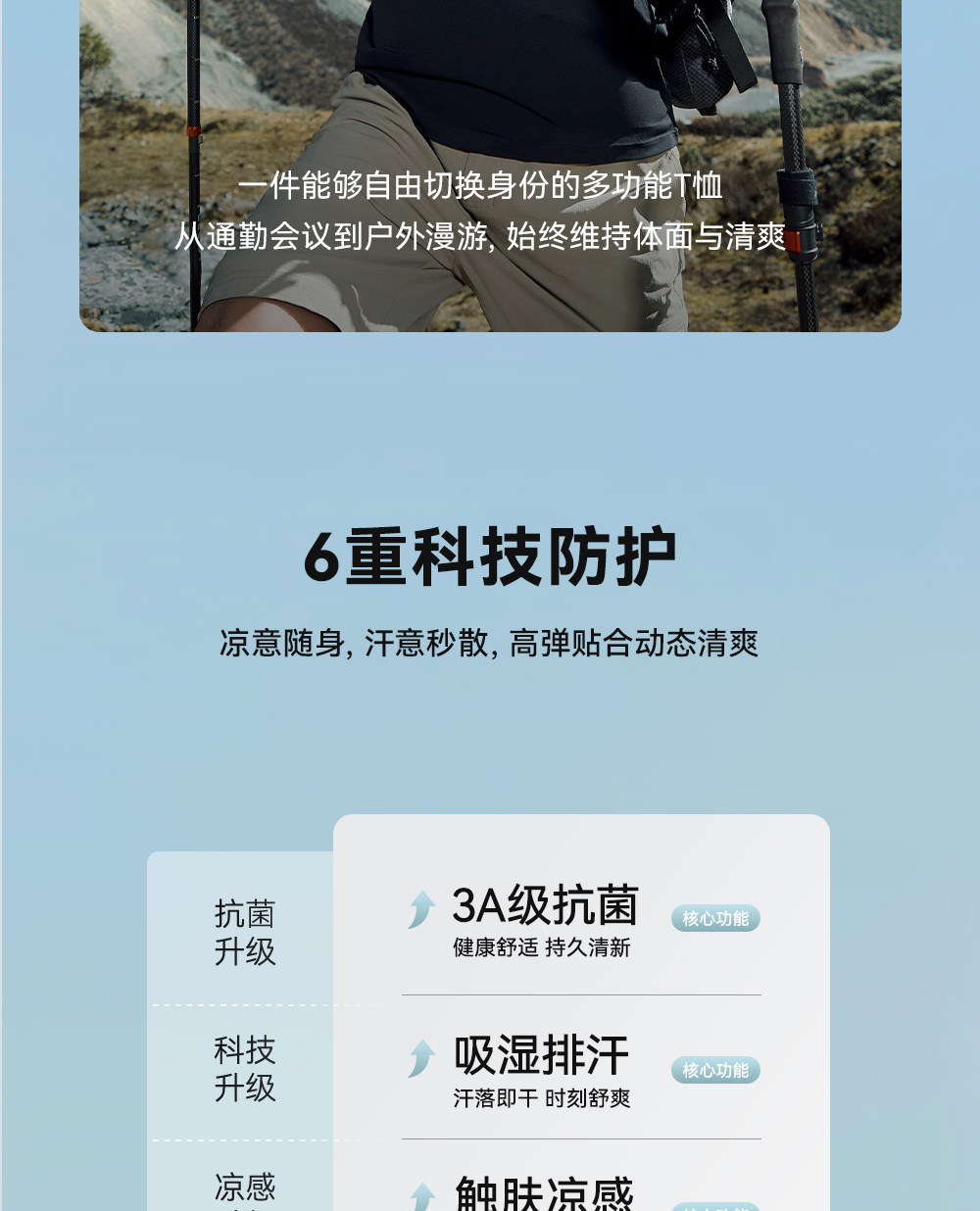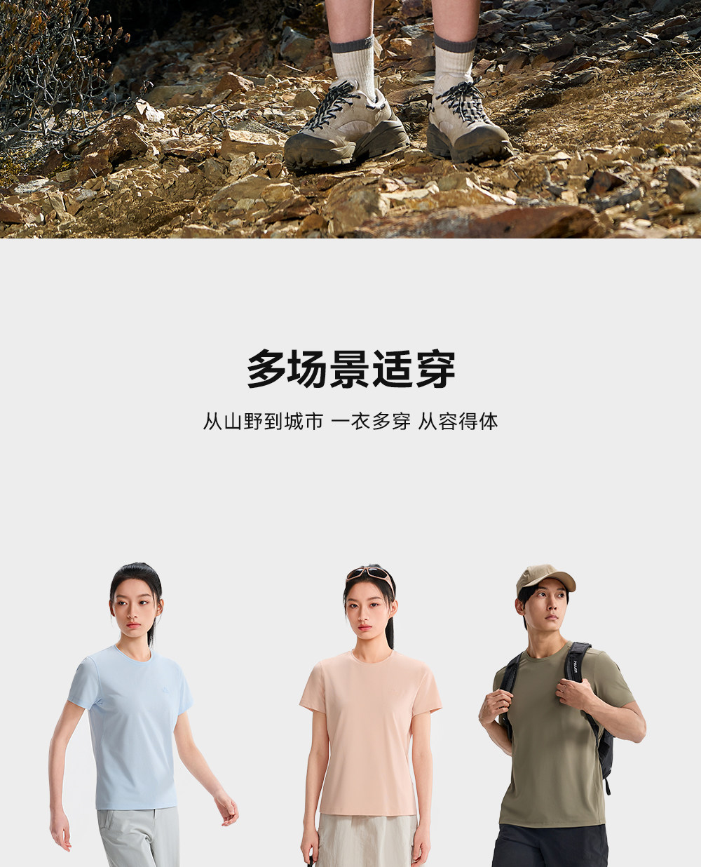 伯希和户外速干T恤女新款抑菌排汗凉感短袖轻量徒步登山打底衣男