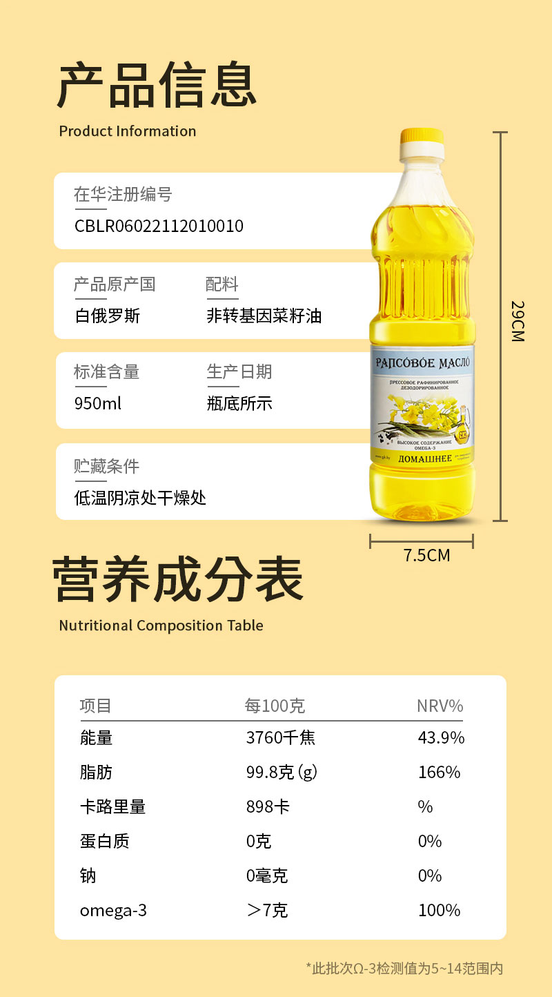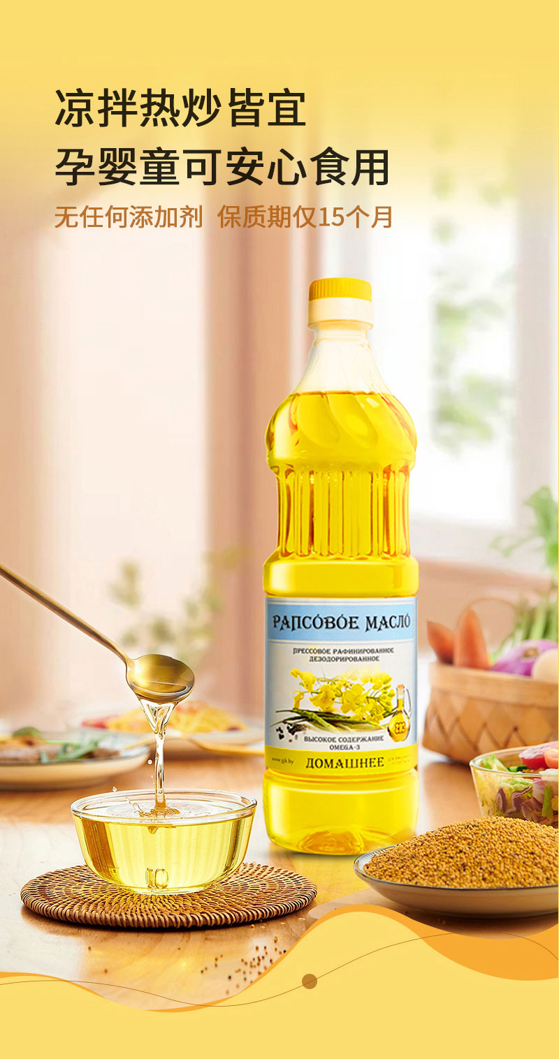 白俄罗斯菜籽油950ml 精炼脱臭食用油 非转基因炒菜油