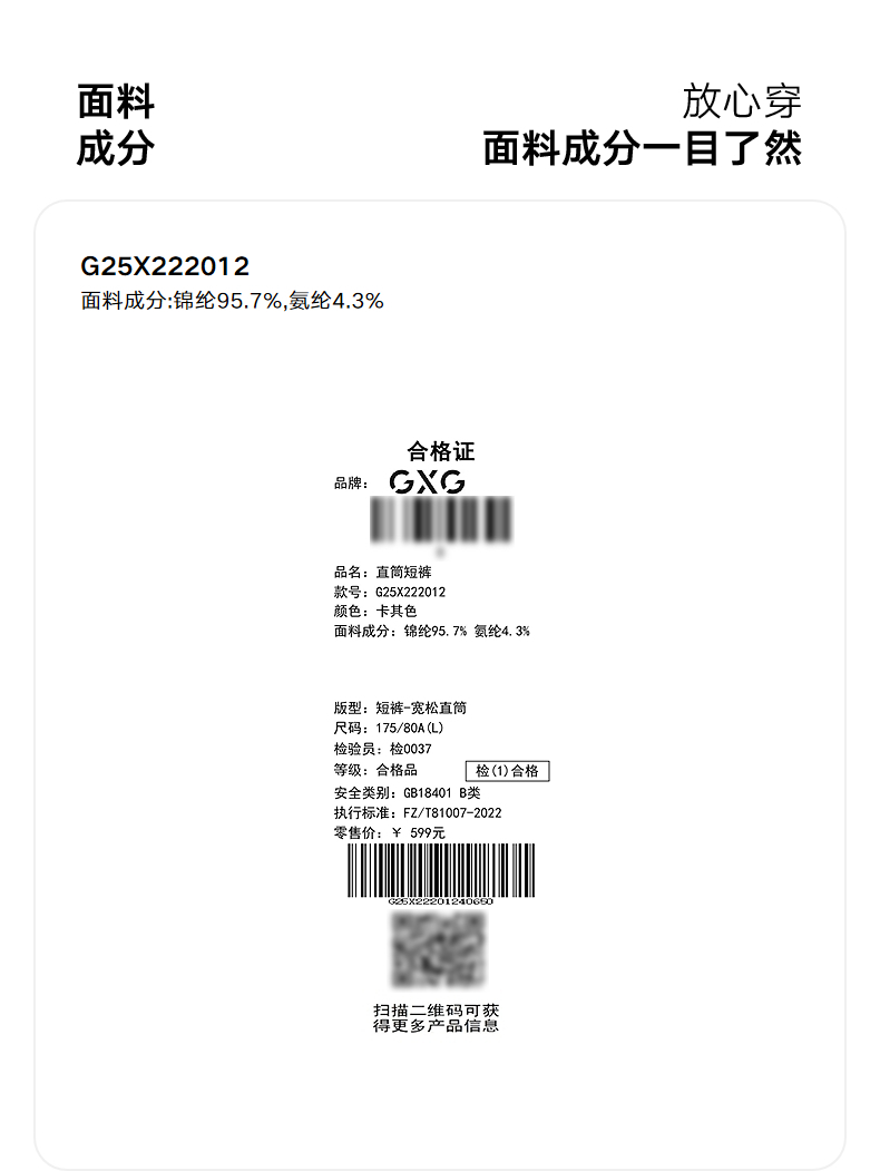 GXG男装 户外cordura面料短裤男通勤 25夏热卖G25X222012