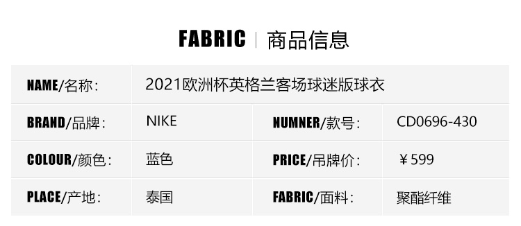 SFS耐克正版 2020欧洲杯英格兰客场球衣 球迷版足球服 CD0696-430