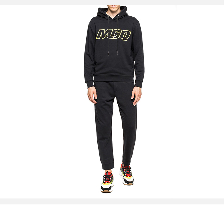 MCQ 麦昆 男士棉质徽标印花连帽长袖运动卫衣 黑色 430578 RNT61 1000