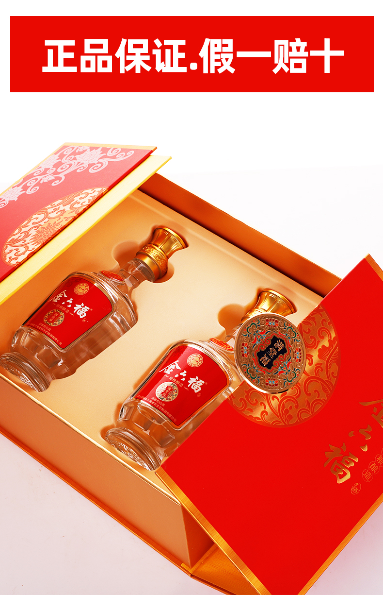 [金六福满堂福]52度-白酒礼盒装浓香型白酒粮食酒500ml×2瓶过节送礼