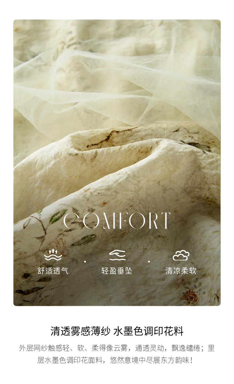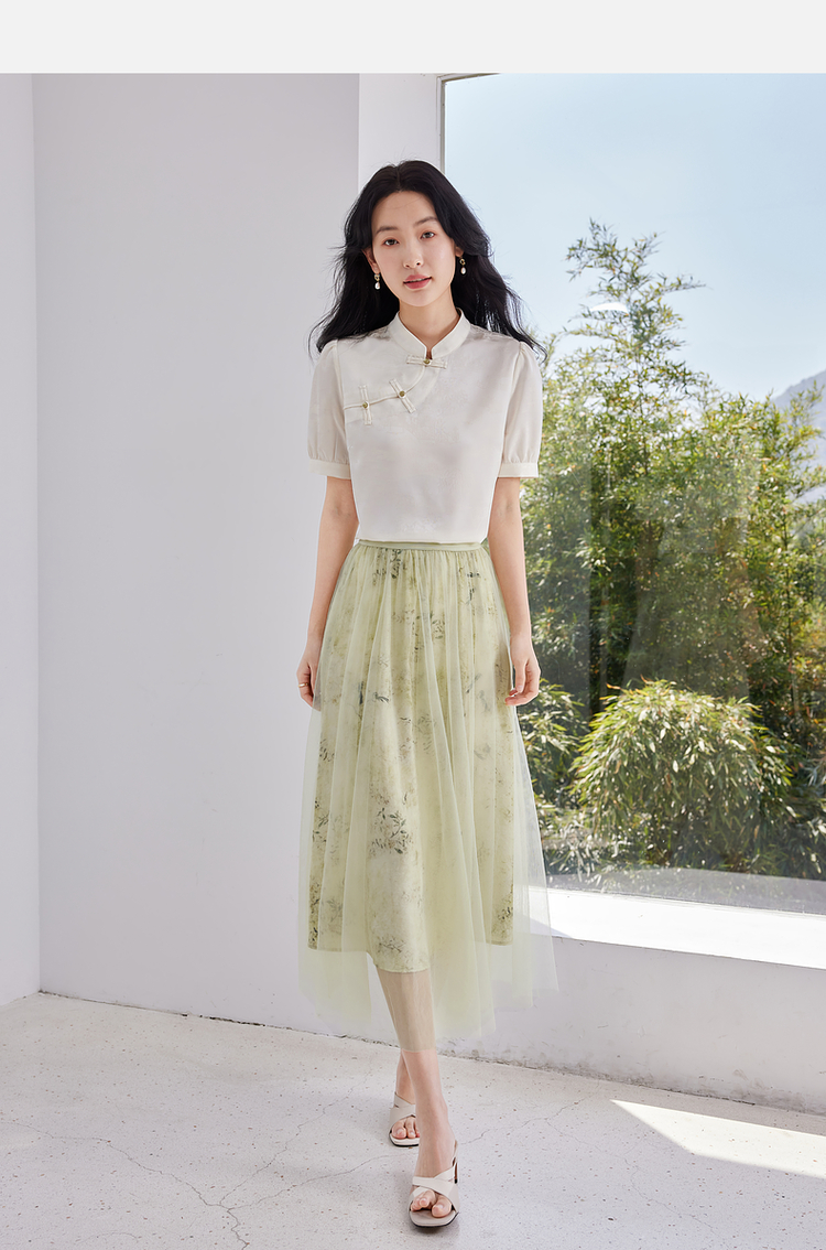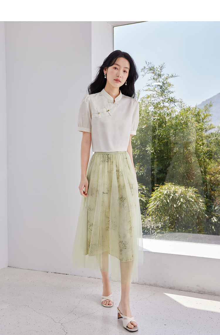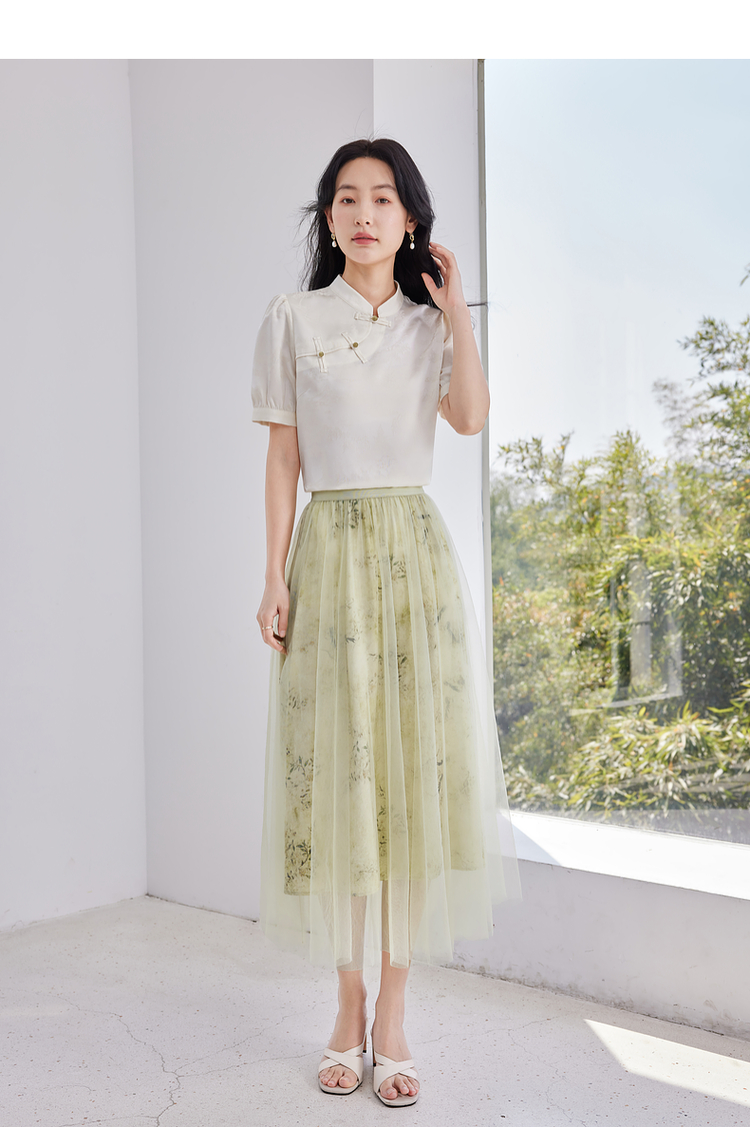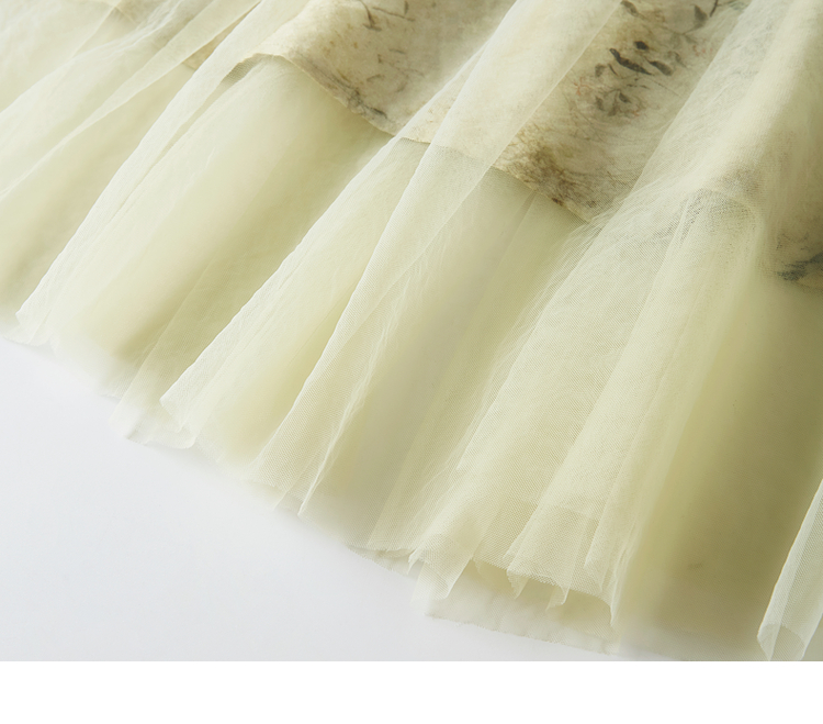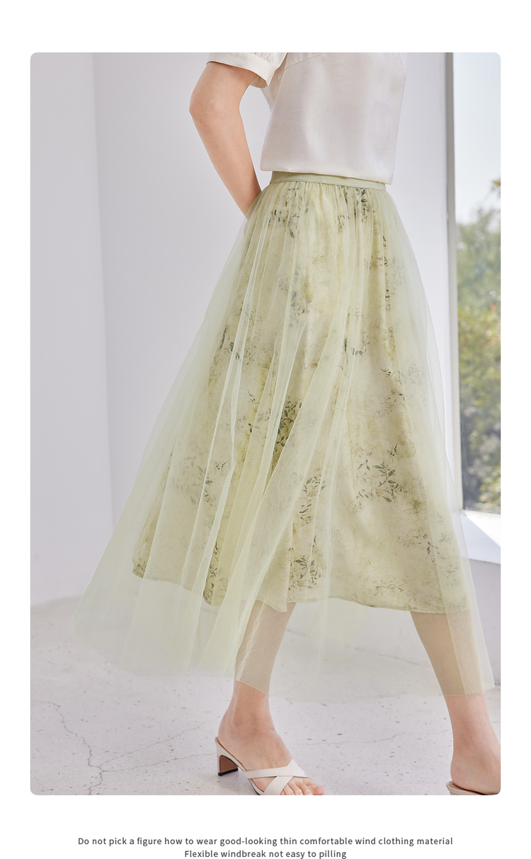 【专属特价】熙世界国风水墨印花a字网纱裙2025夏新款显瘦百褶半身裙中长裙