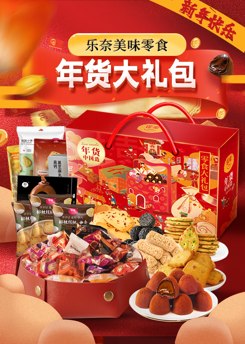 乐奈新春年货巧克力糖果糕点礼盒JL-F8(送大吉大利收纳盘)