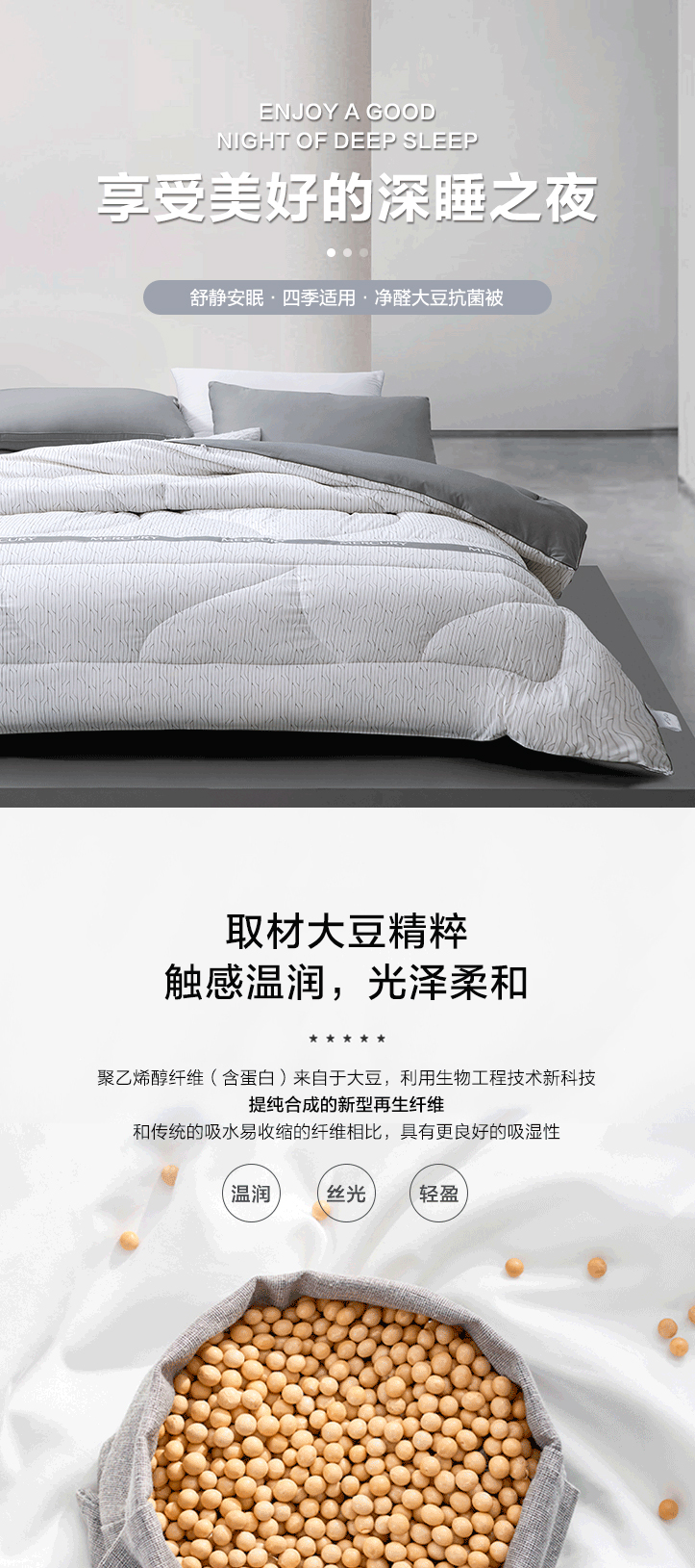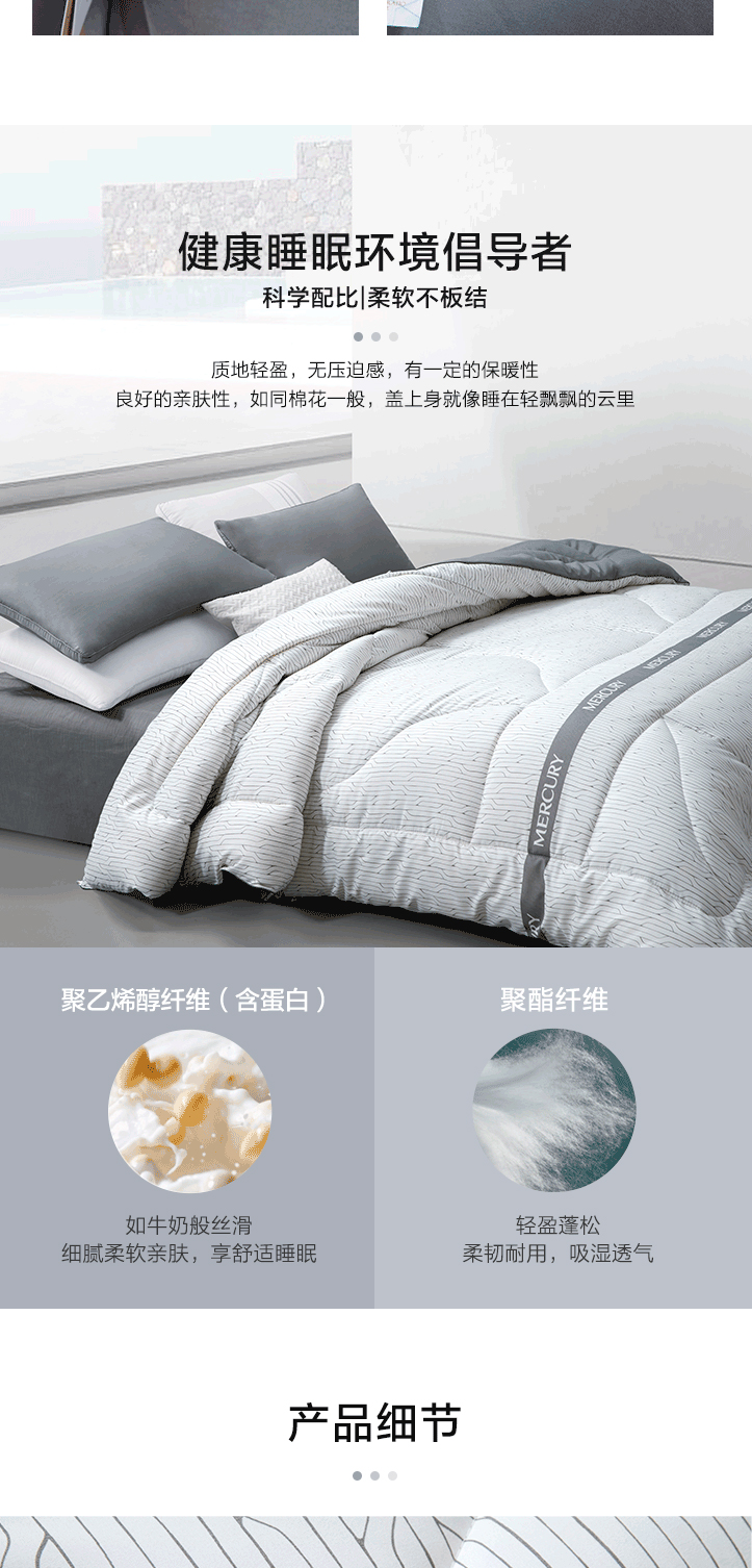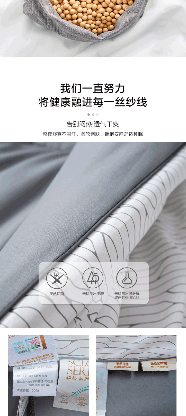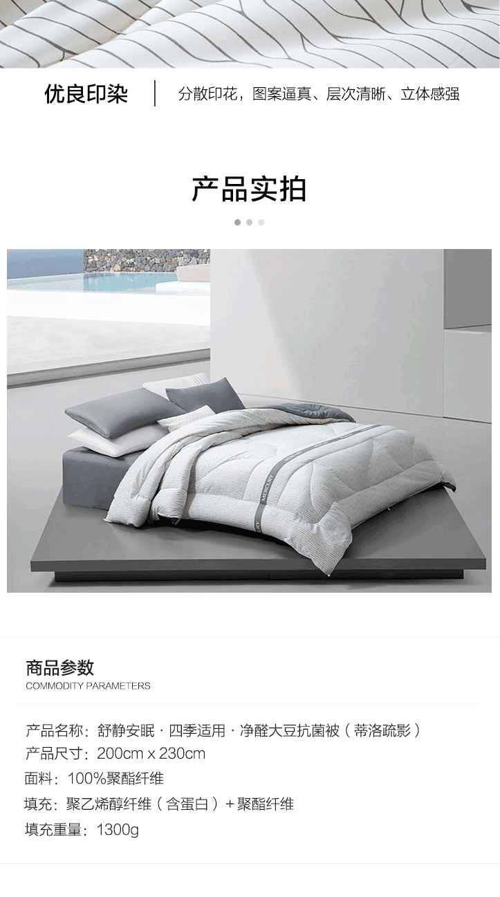 水星家纺M舒静安眠·四季适用·负离子净醛大豆抗菌被(蒂洛疏影)