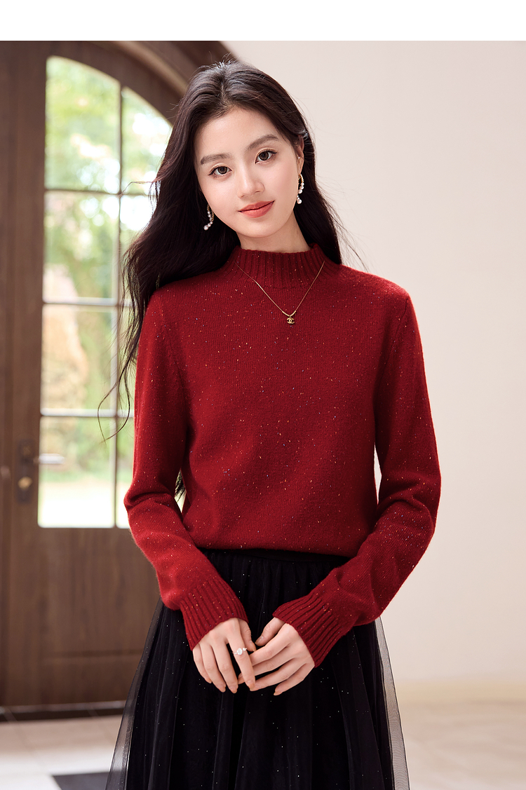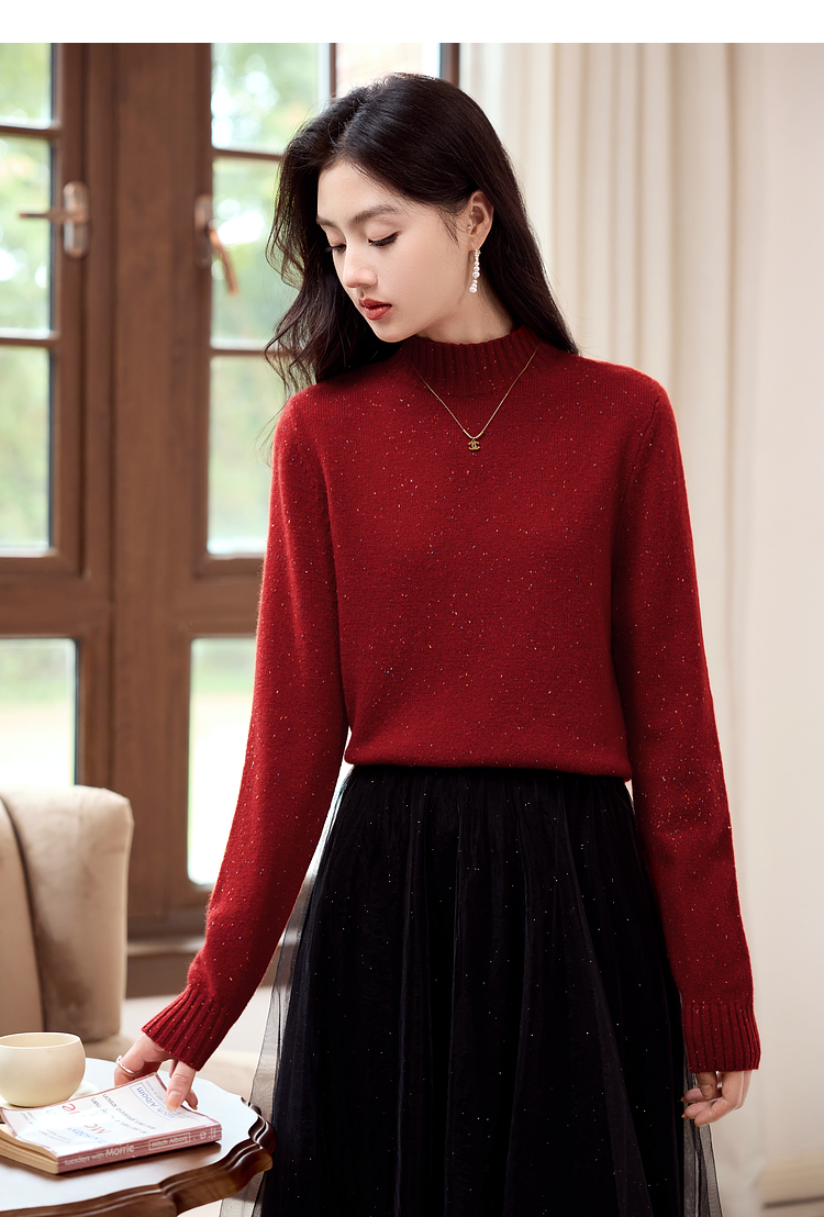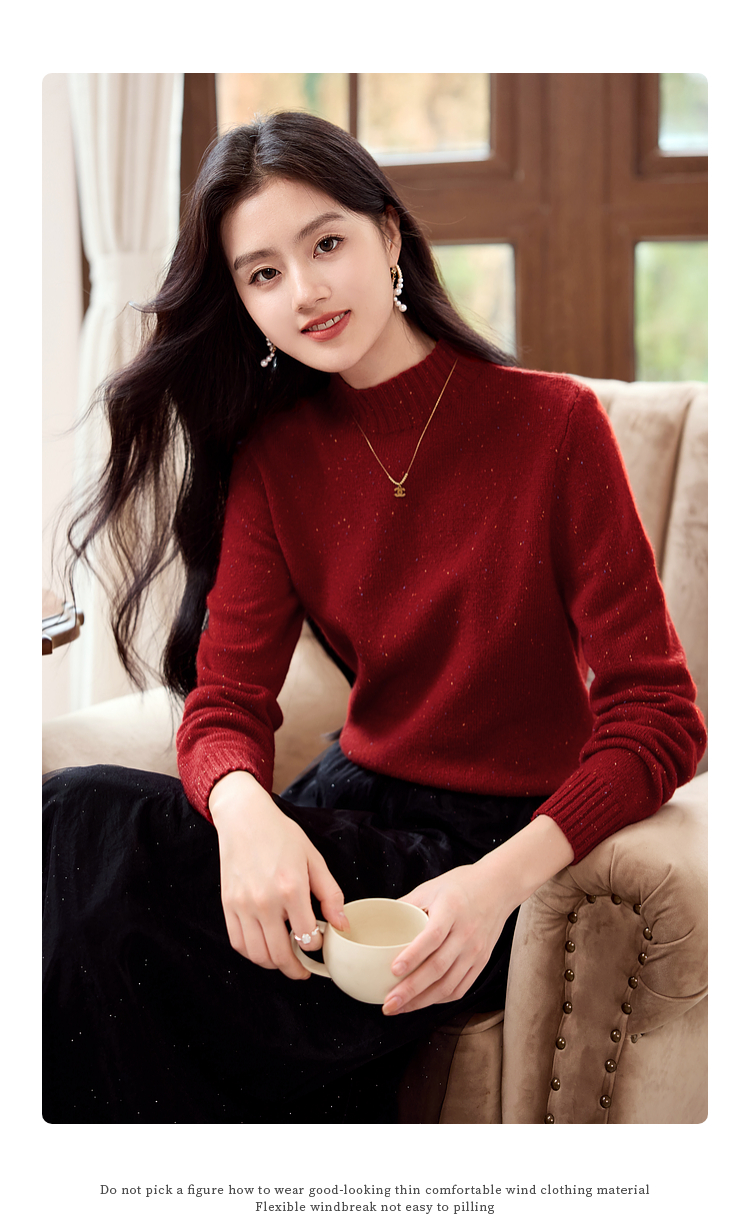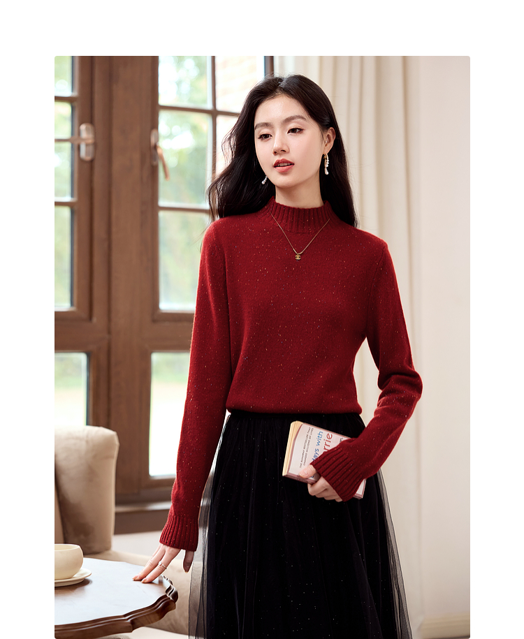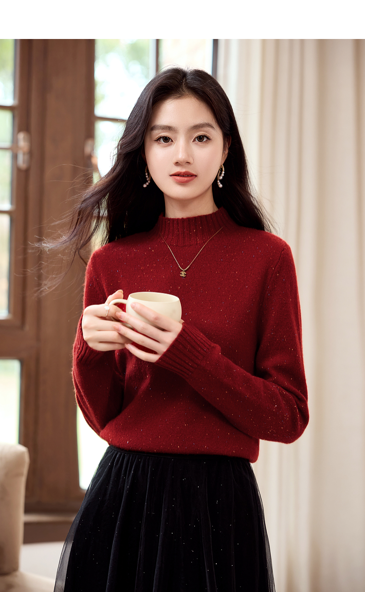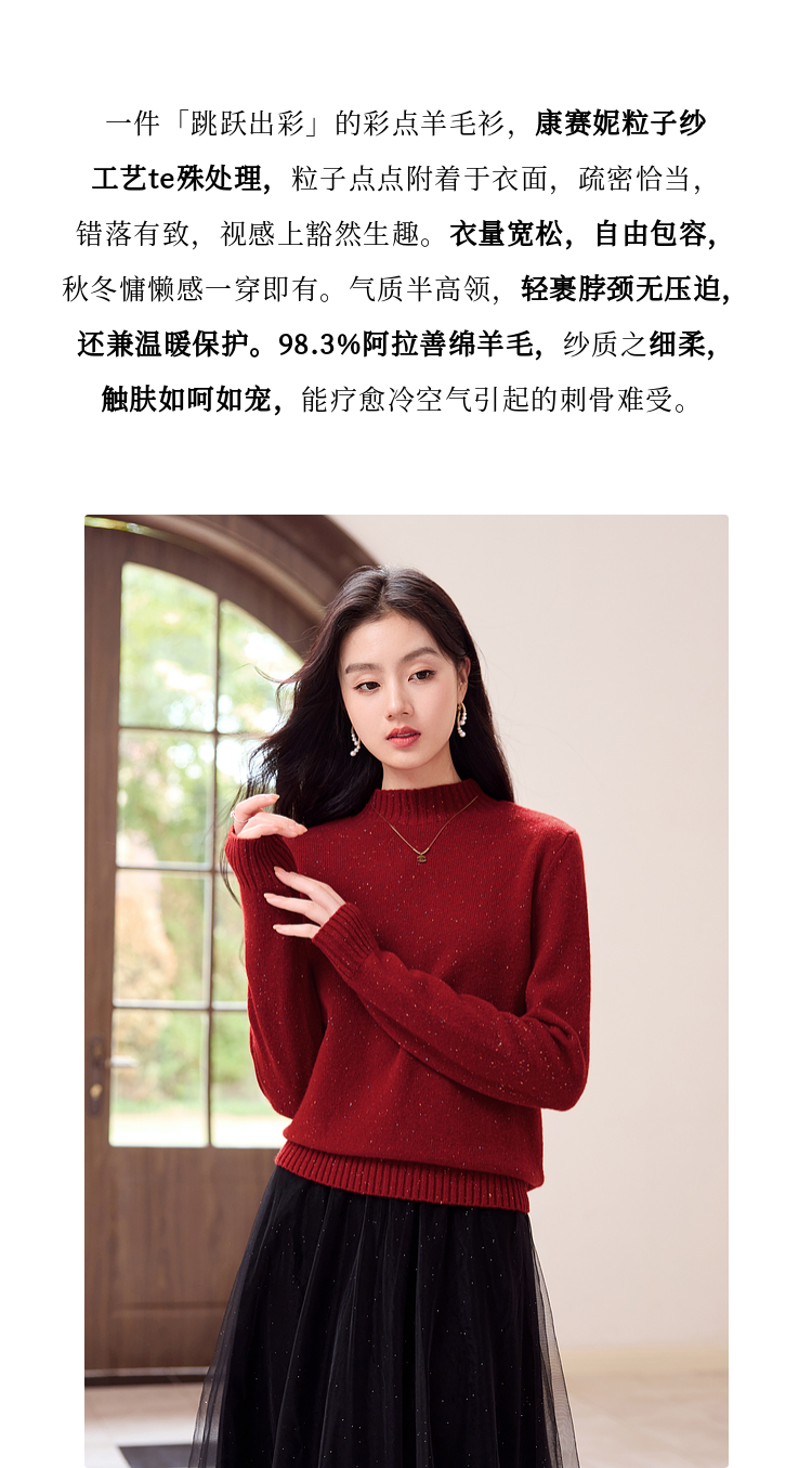 【年货节】熙世界彩点半高领打底羊毛衫女2025秋冬新款长袖内搭红色针织毛衣