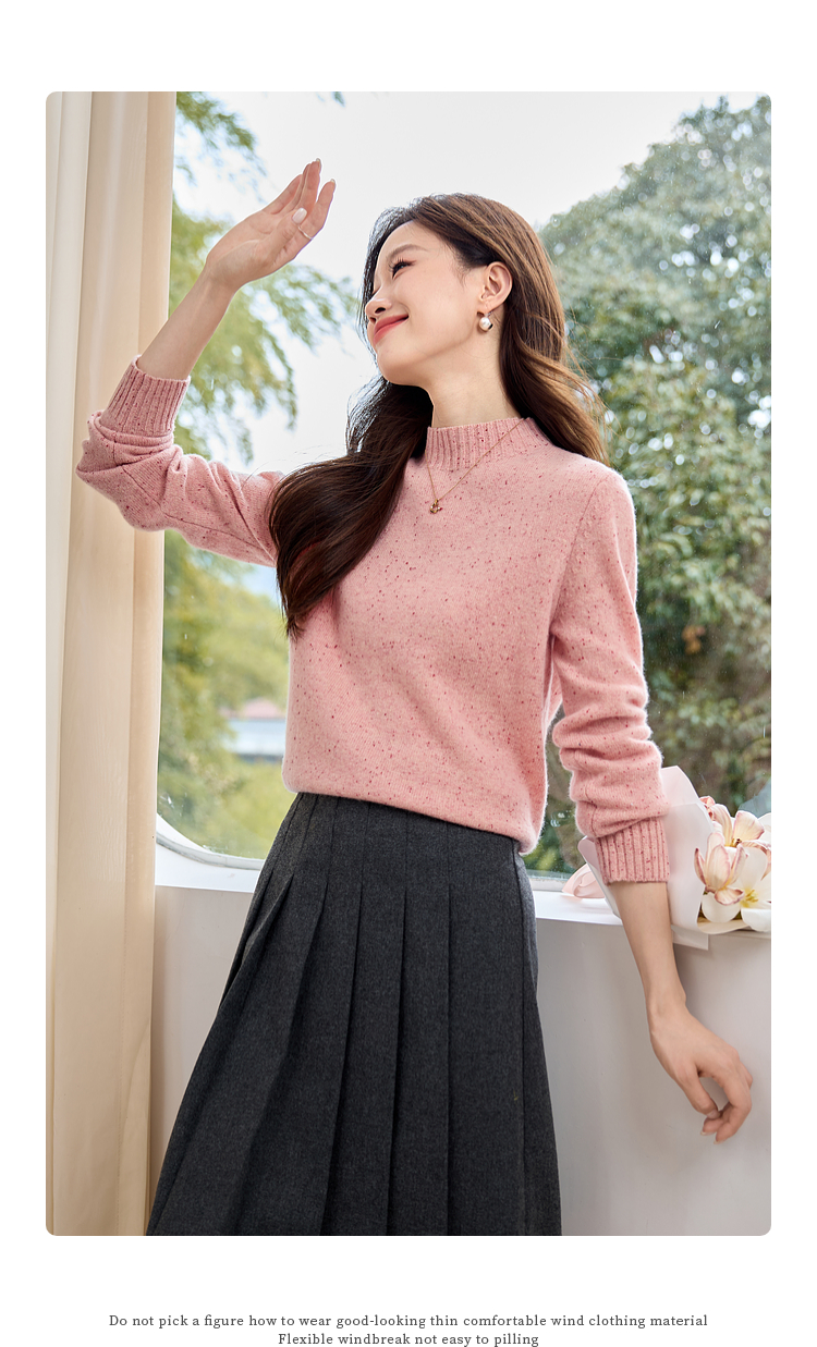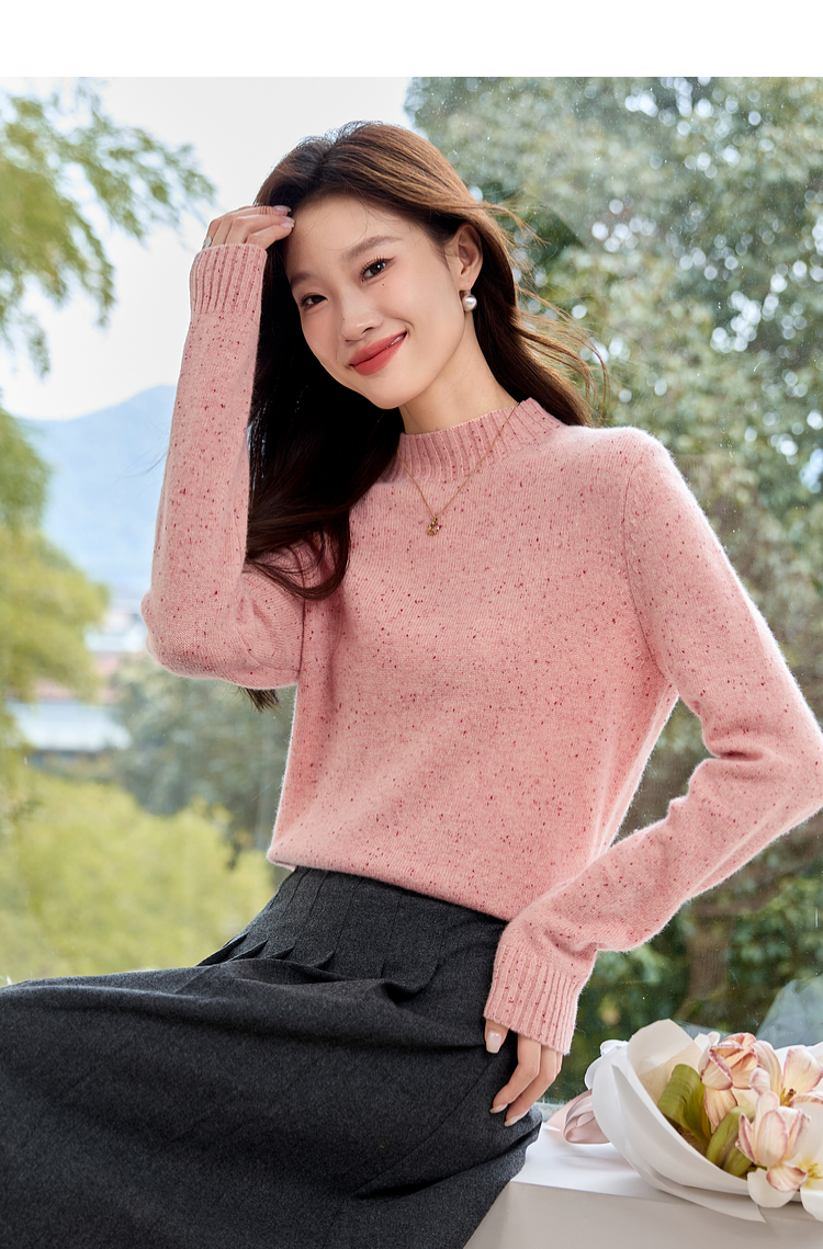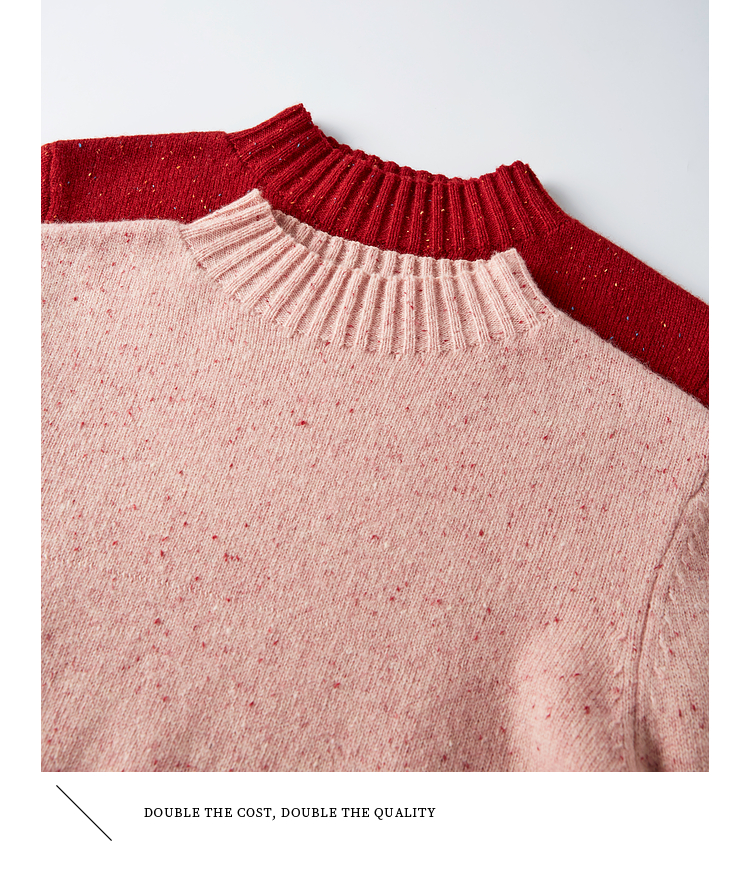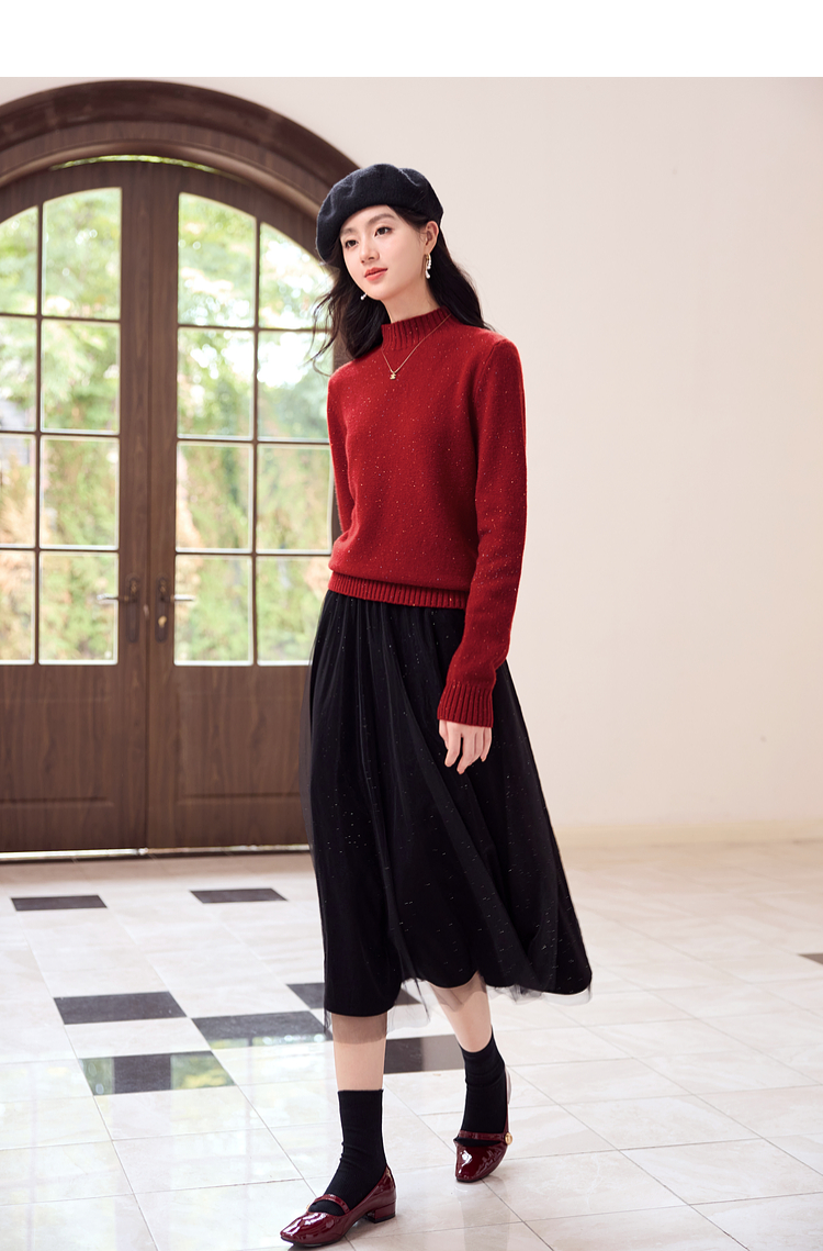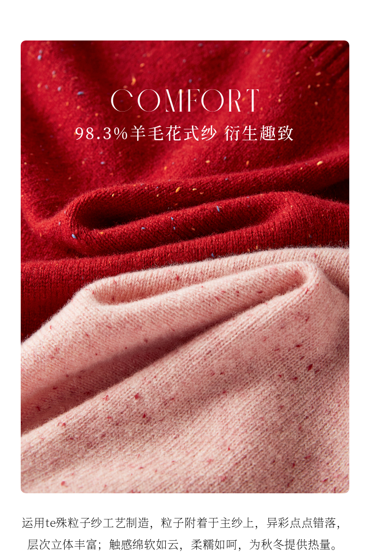 【年货节】熙世界彩点半高领打底羊毛衫女2025秋冬新款长袖内搭红色针织毛衣