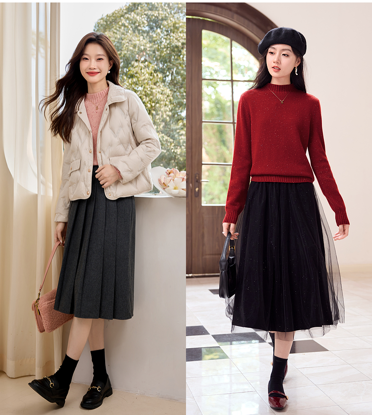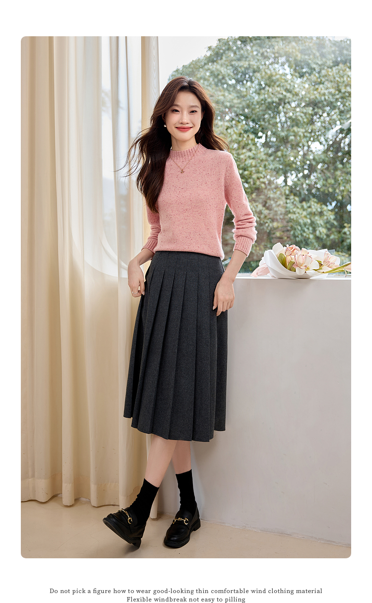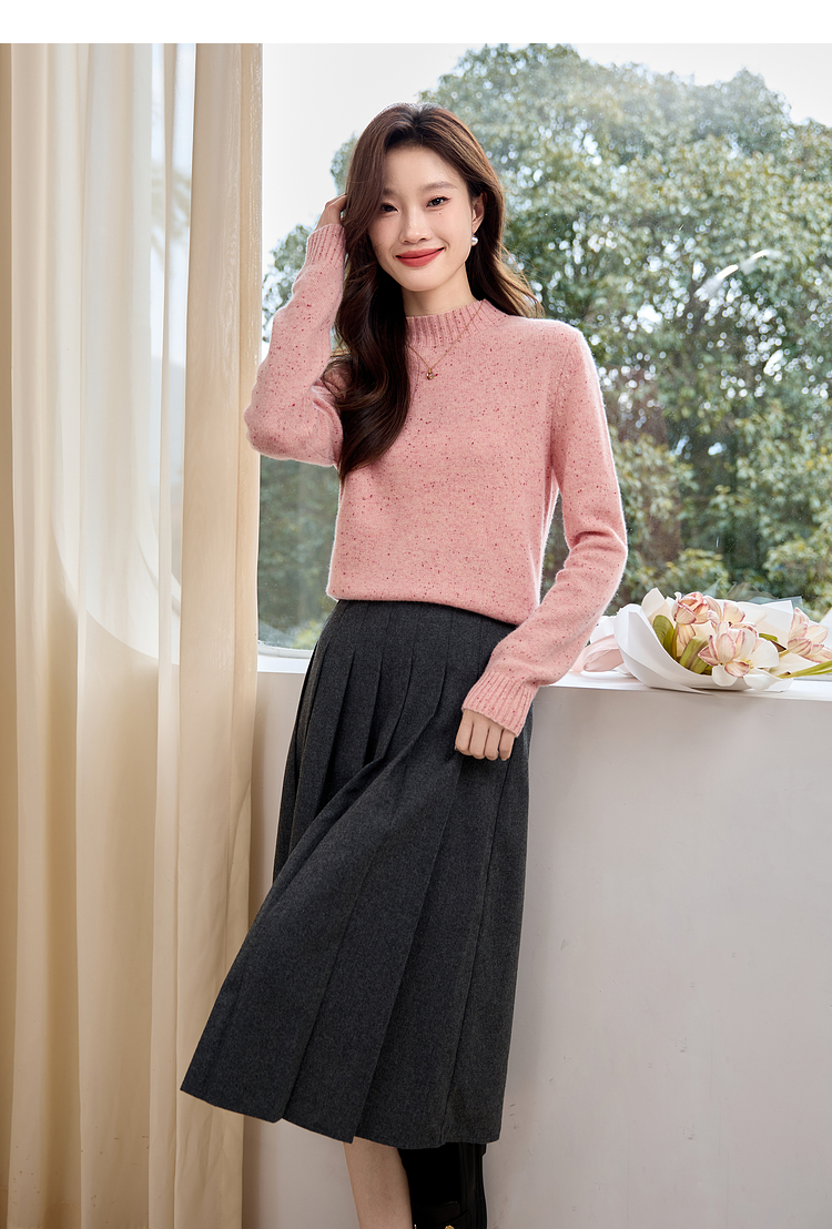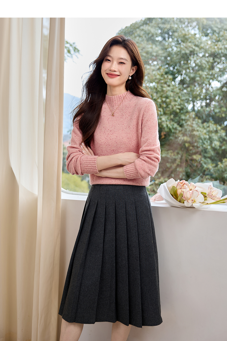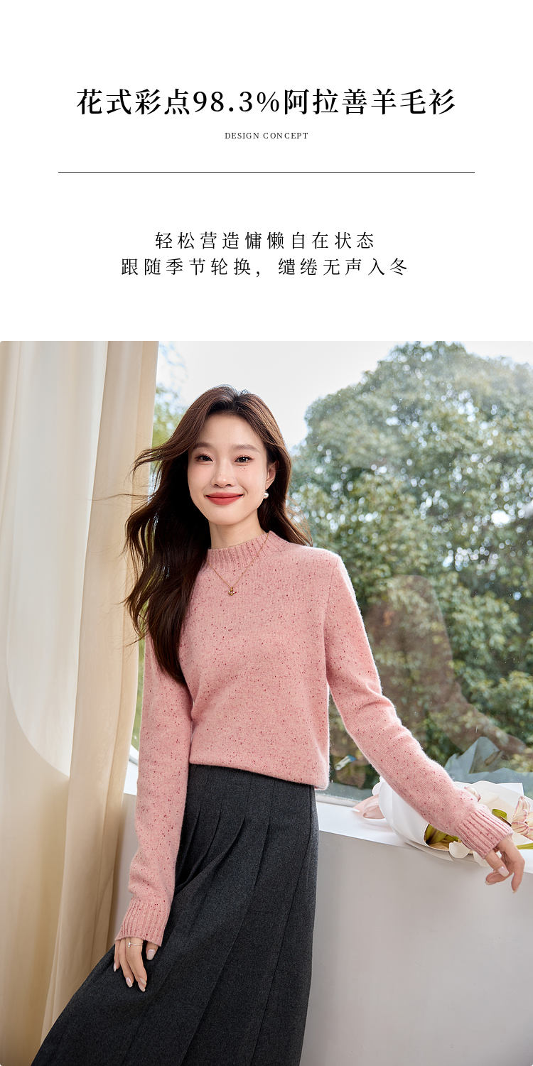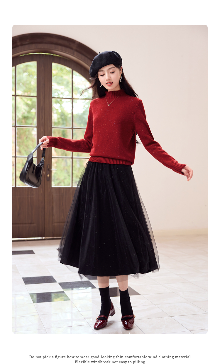 【年货节】熙世界彩点半高领打底羊毛衫女2025秋冬新款长袖内搭红色针织毛衣