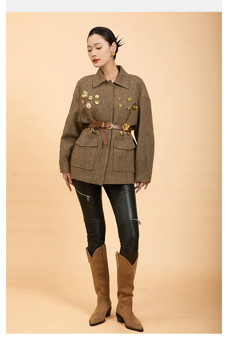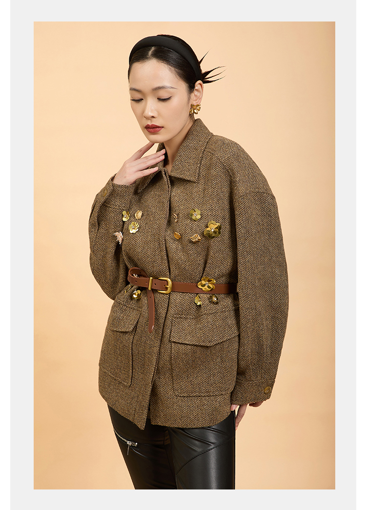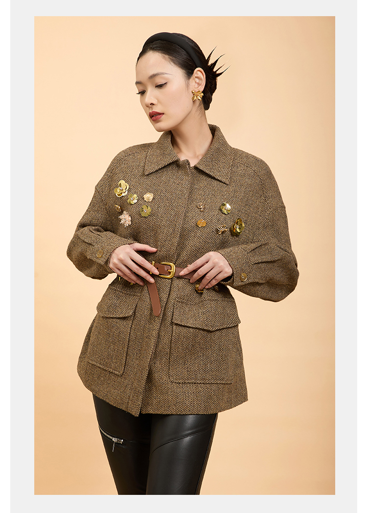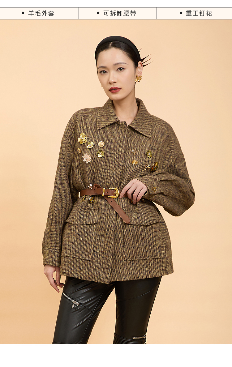 郭培成衣品牌精品系列千金风钉花羊毛外套